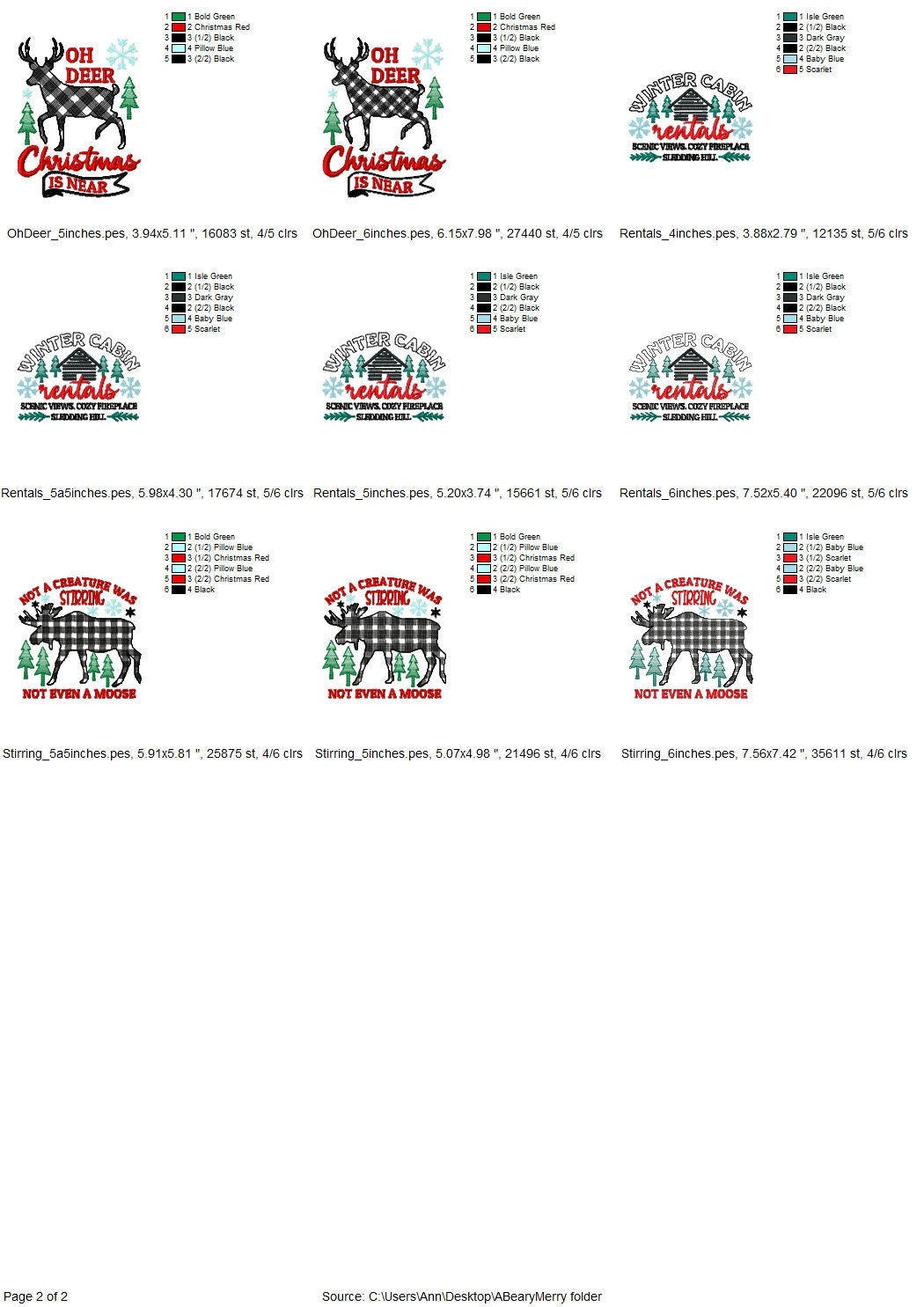 Color charts: PDF or image file with thread colors, stitch order, and counts