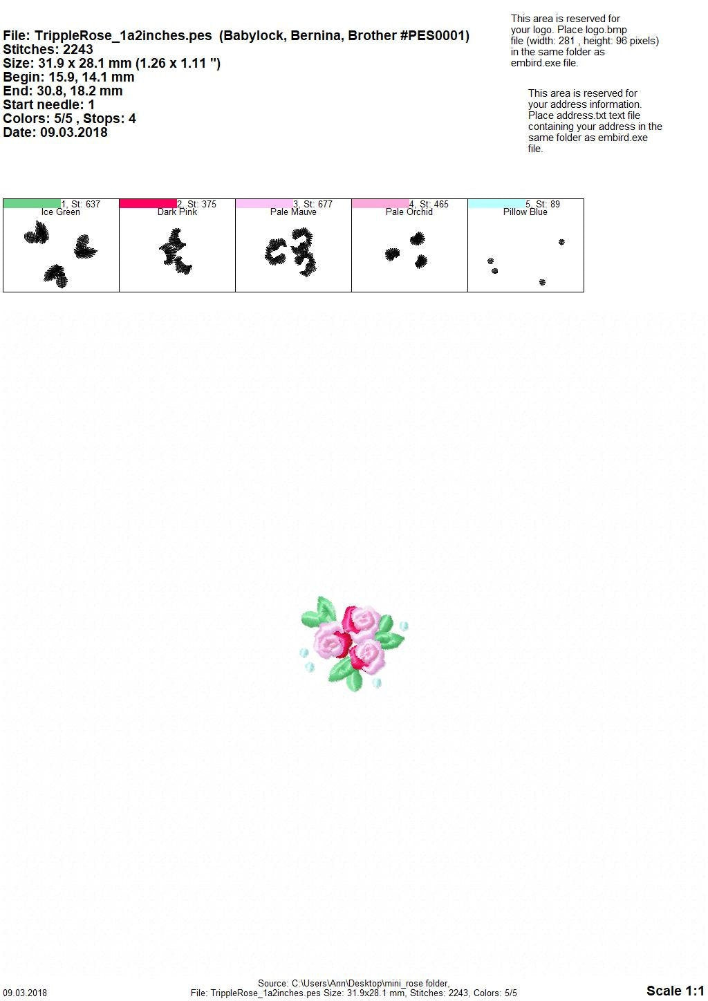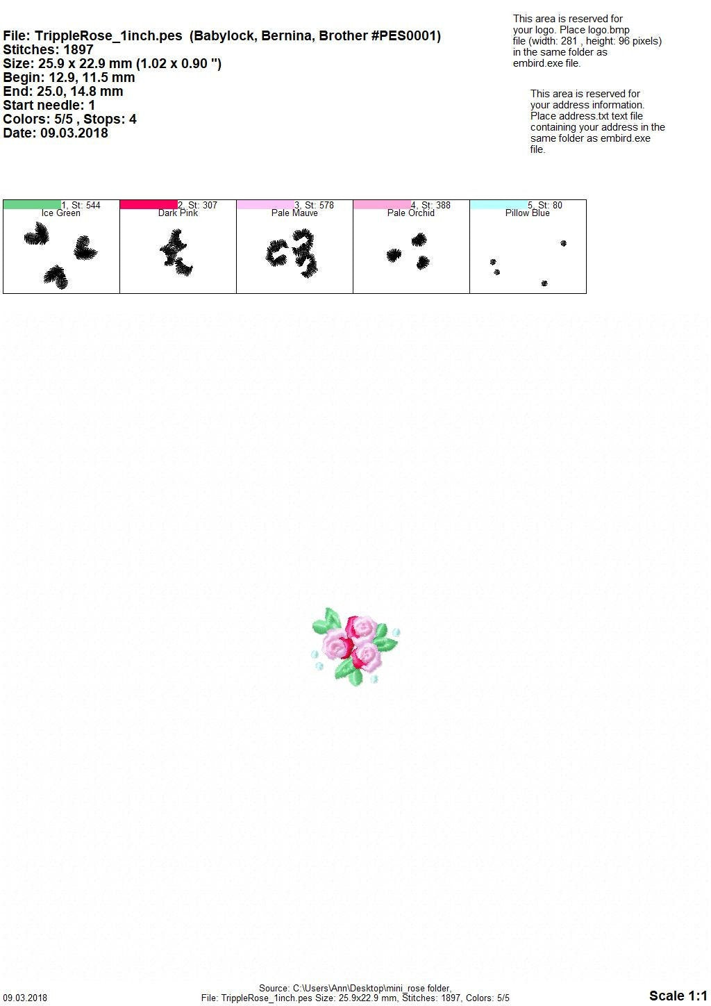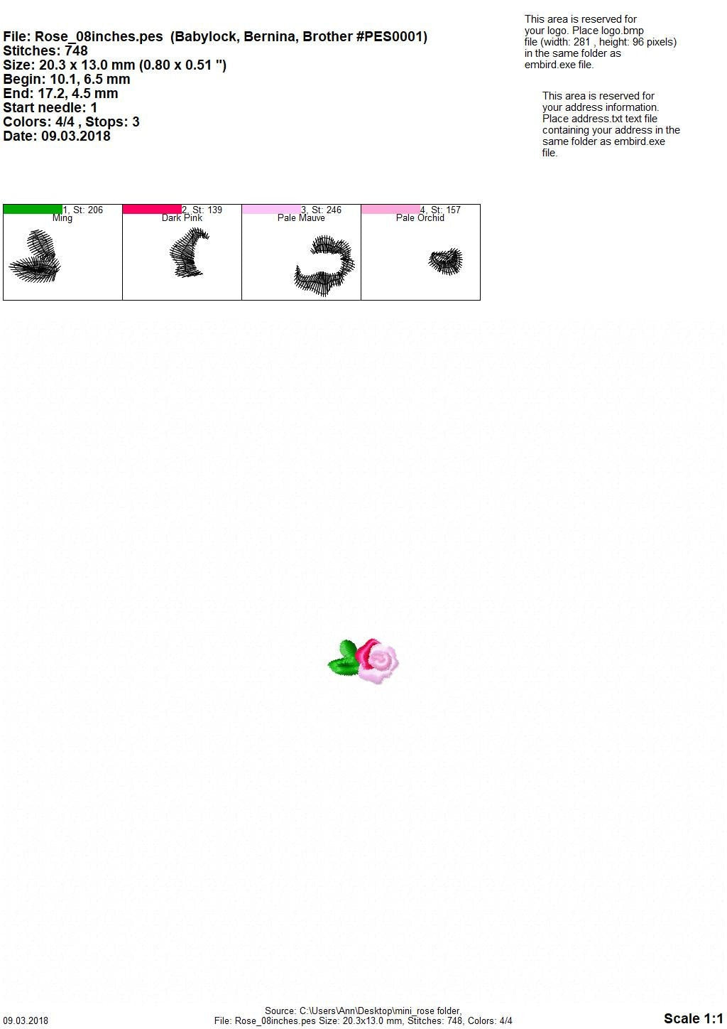 Accent mini rose, small rose, small flower, mini roses, mini, wee, machine embroidery design, Big set 0.8 and 1 inch, rose embroidery desing