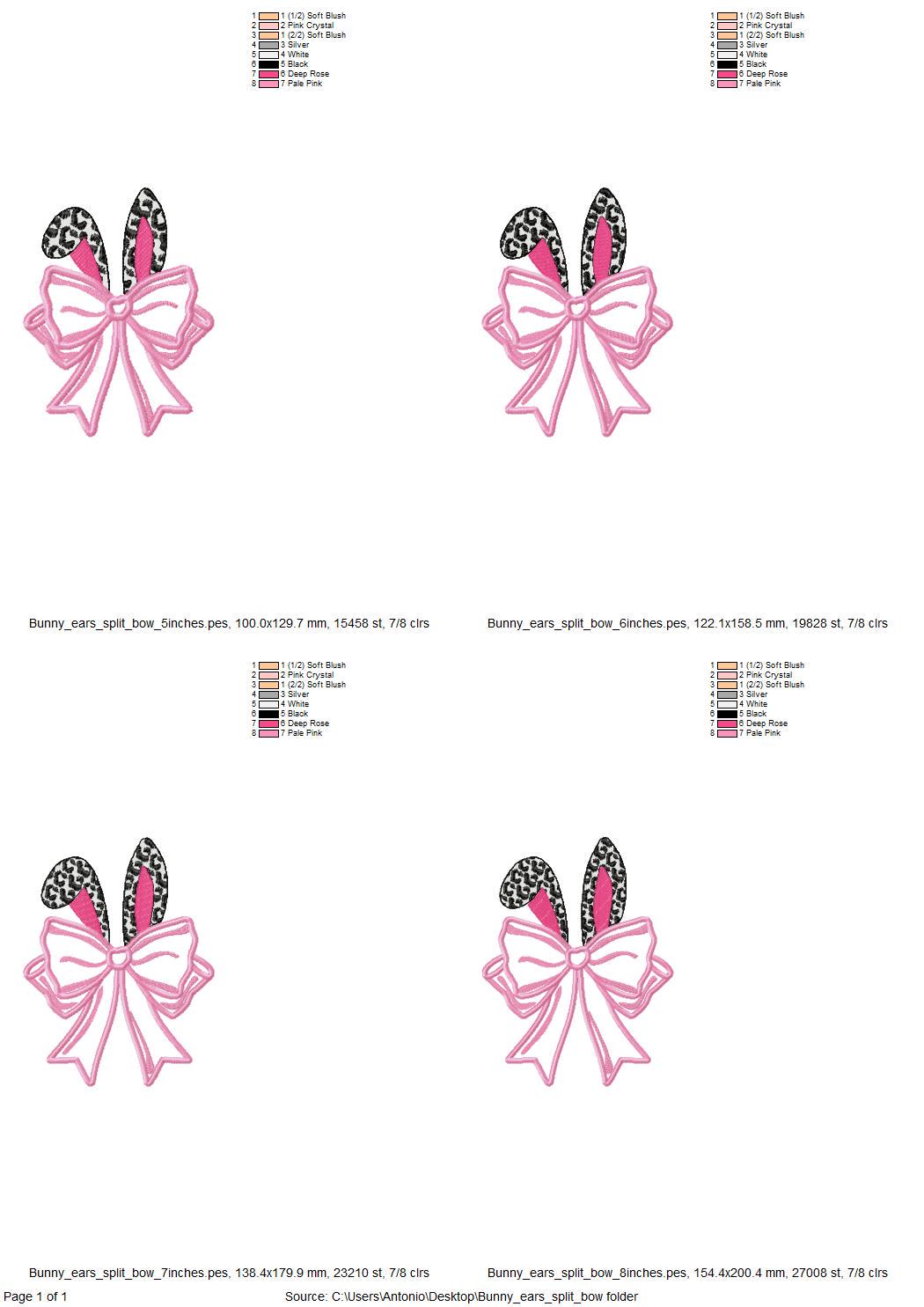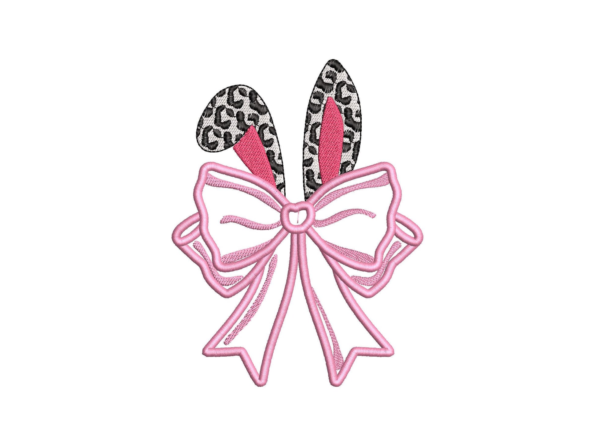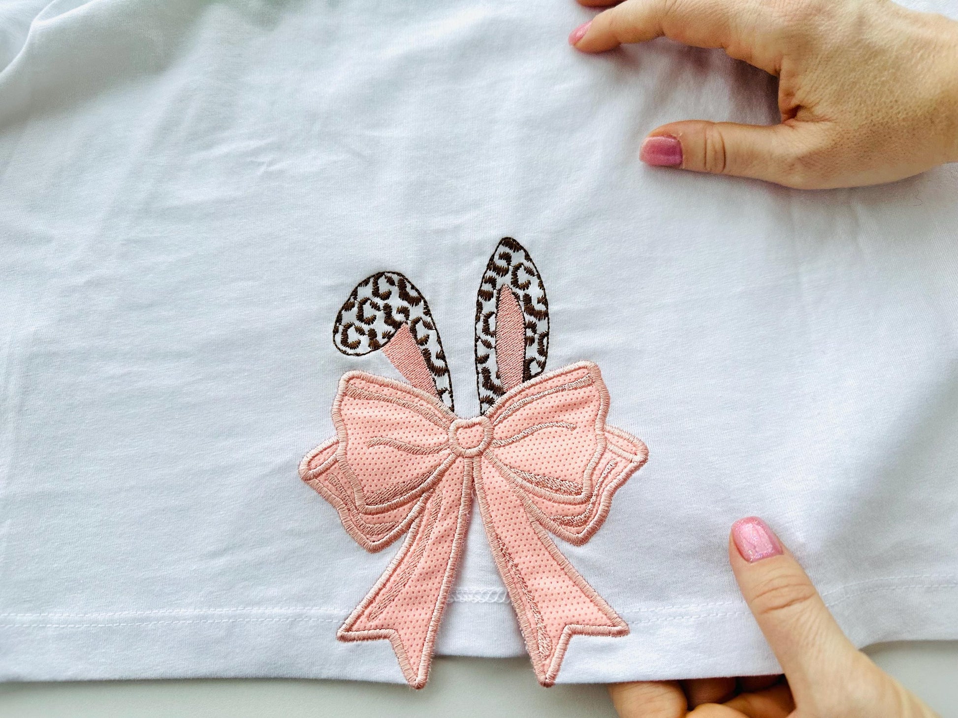 Adorable Bunny Ears with leopard spots split seam cutout Side Bow Applique machine embroidery designs for kids girls t-shirt sweatshirt