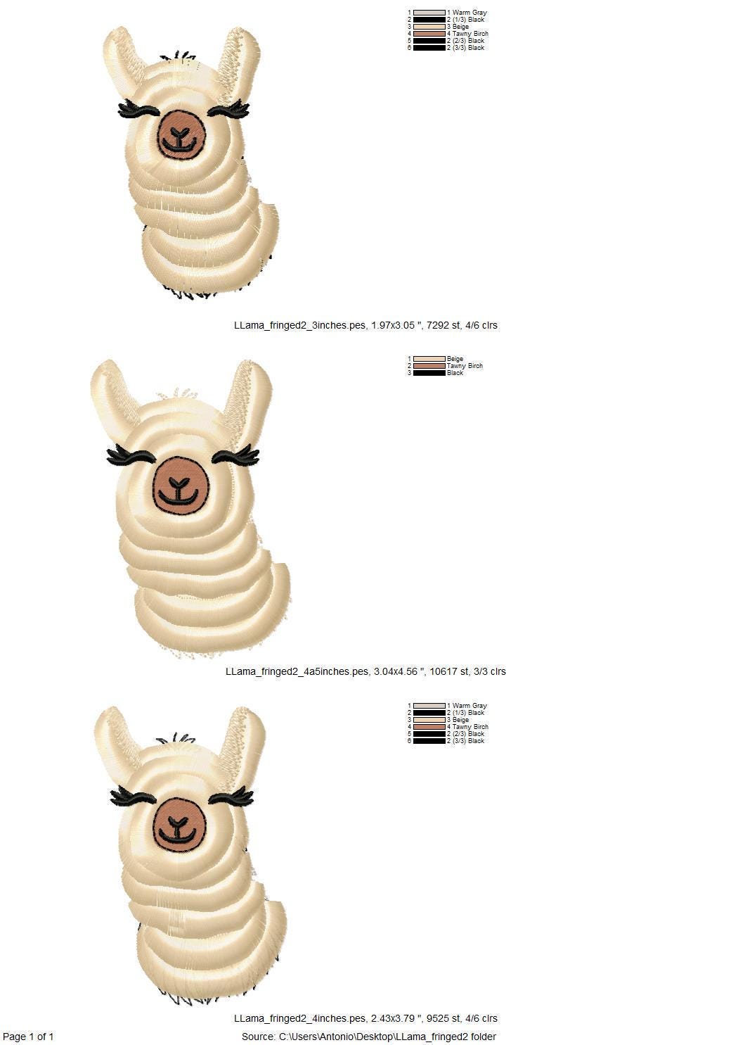 Adorable fringed fluffy Llama Alpaca kids baby fur chenille fringe machine embroidery designs assorted sizes 3 up to 4.5 inch farm animal