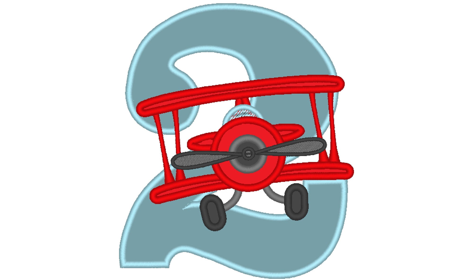 Airplane Birthday number TWO 2 Applique machine embroidery designs kids boy baby Birthday outfit hoop 4x4, 5x7, 6x10 vehicle plane number