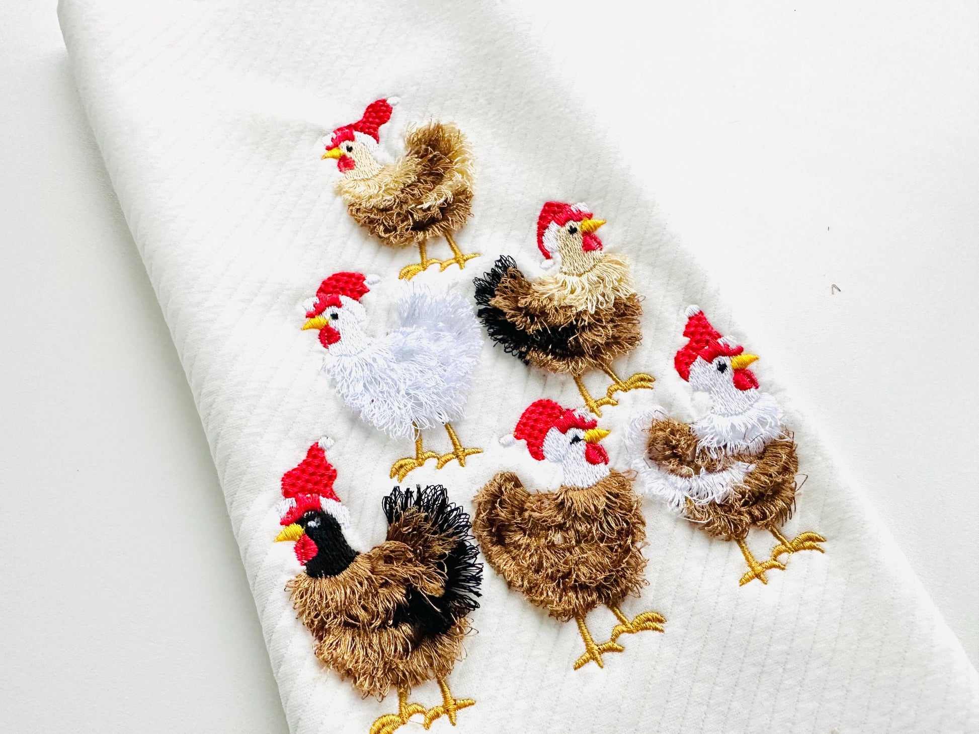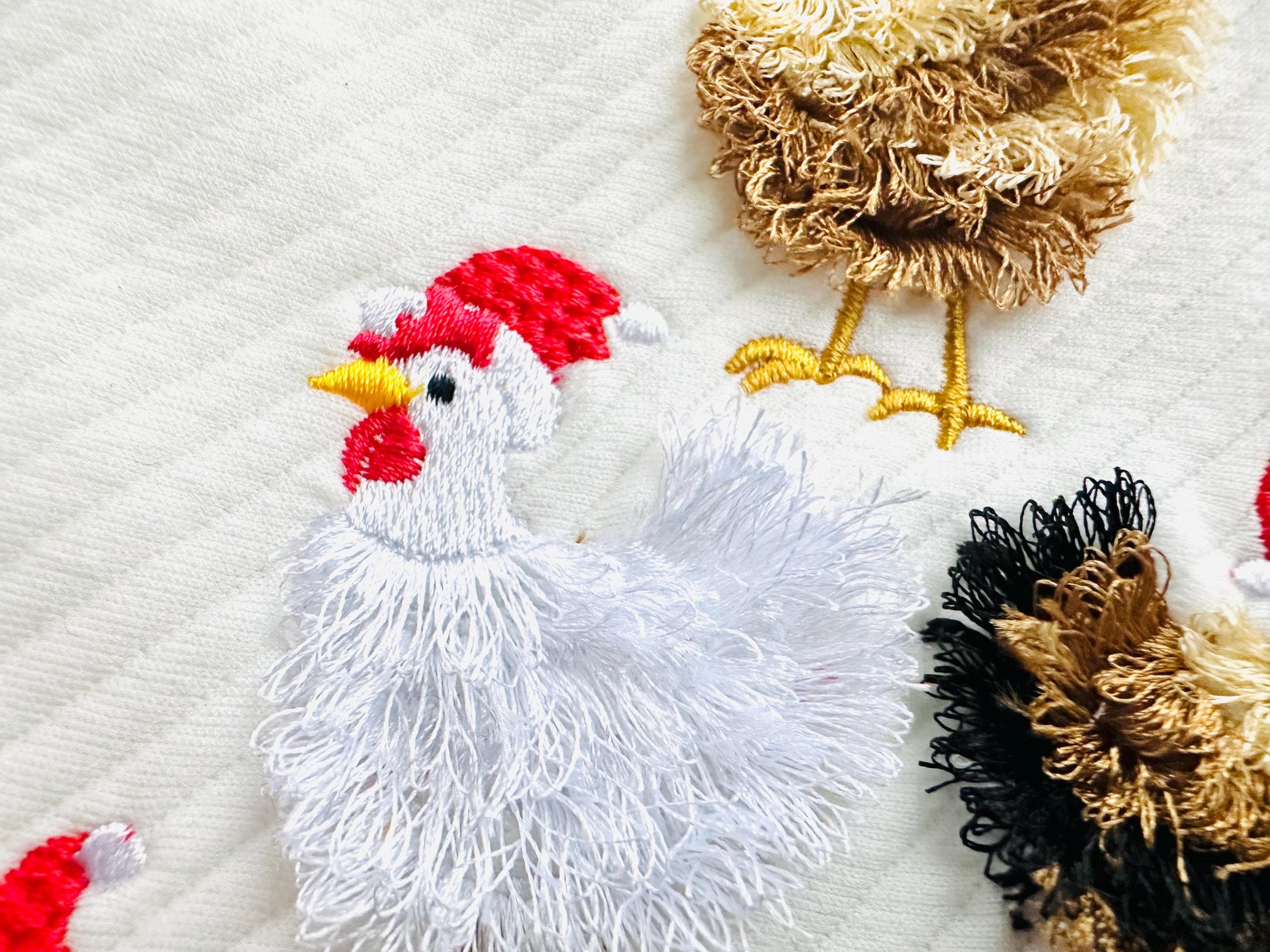 Awesome Chicken flock with Santa hat machine embroidery designs Fringed Fluffy chenille farm bird Chickens Christmas tree multiple sizes