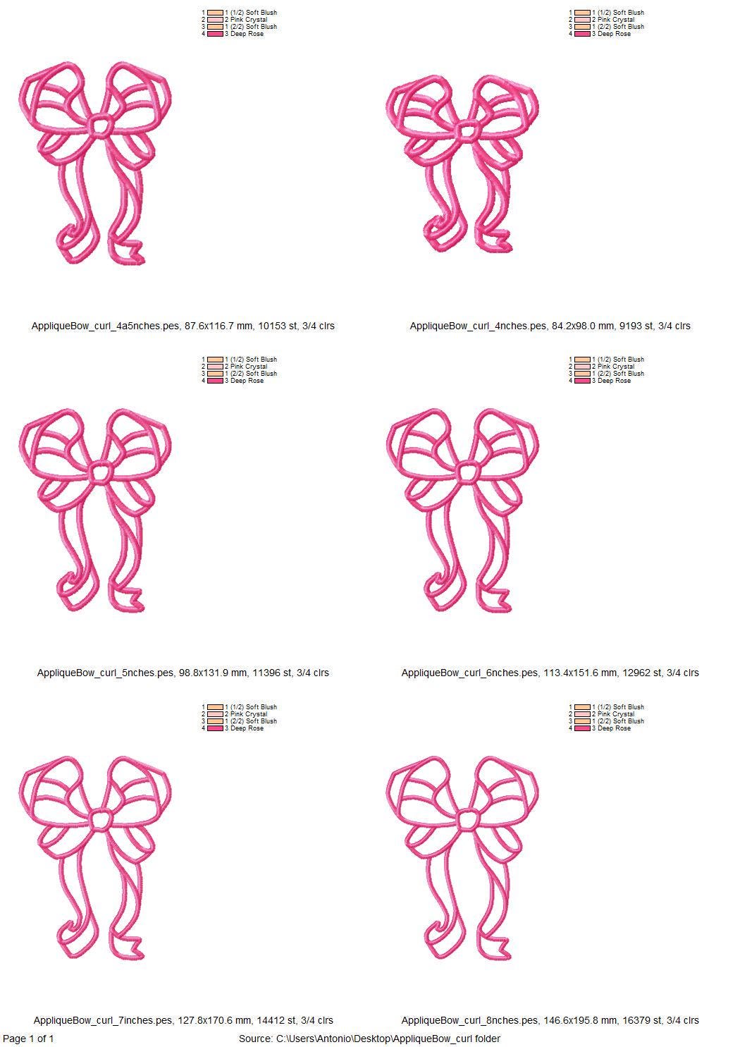 Awesome Curl Bow Applique machine embroidery designs ribbon Girly Bow multiple sizes from 4 to 8 inches kids girl outfit Heirloom side Bow