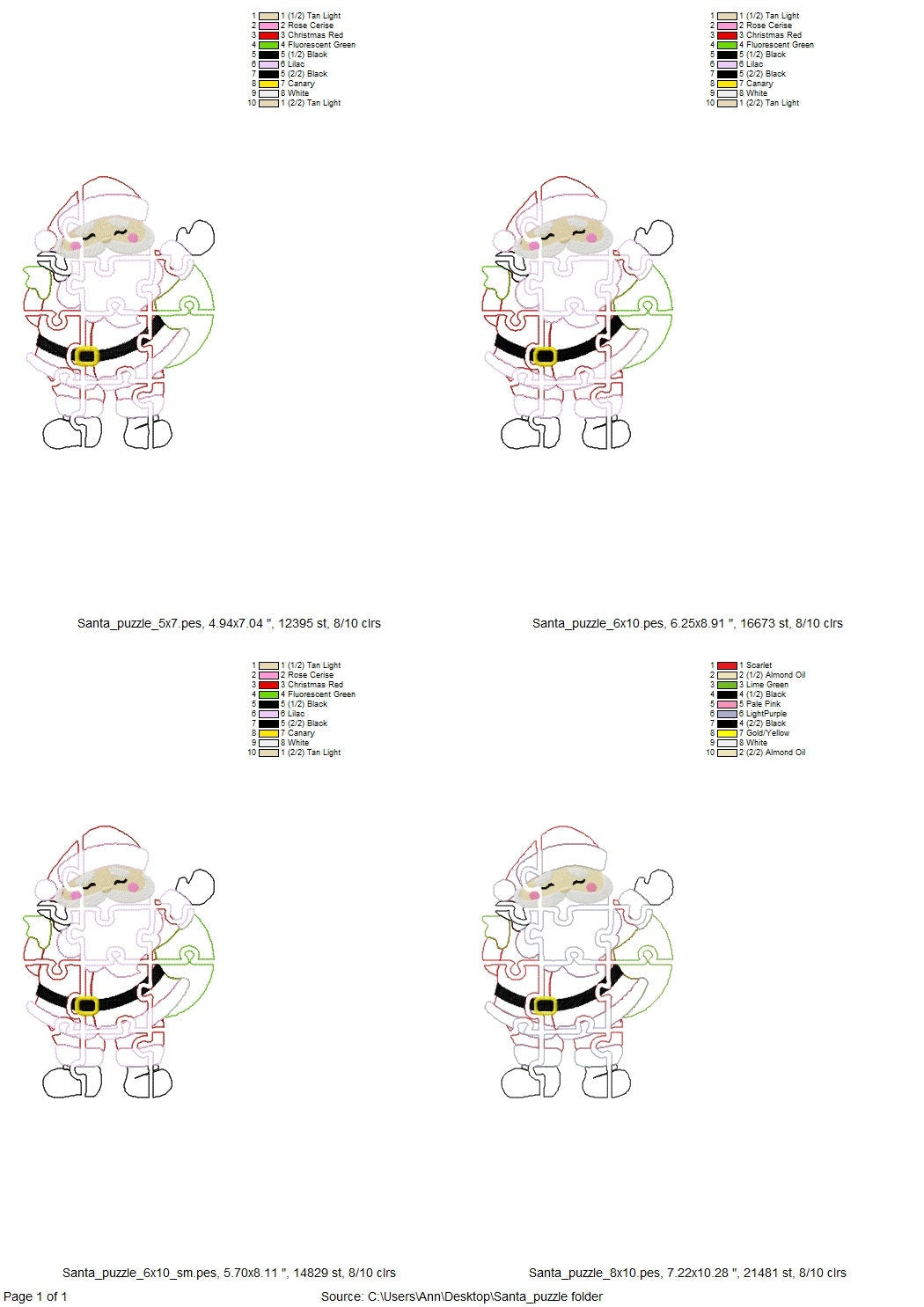 Awesome Santa Puzzle ITH in the hoop - game - machine embroidery designs for hoop 5x7 and 6x10 kids playing toy Christmas Santa puzzle game