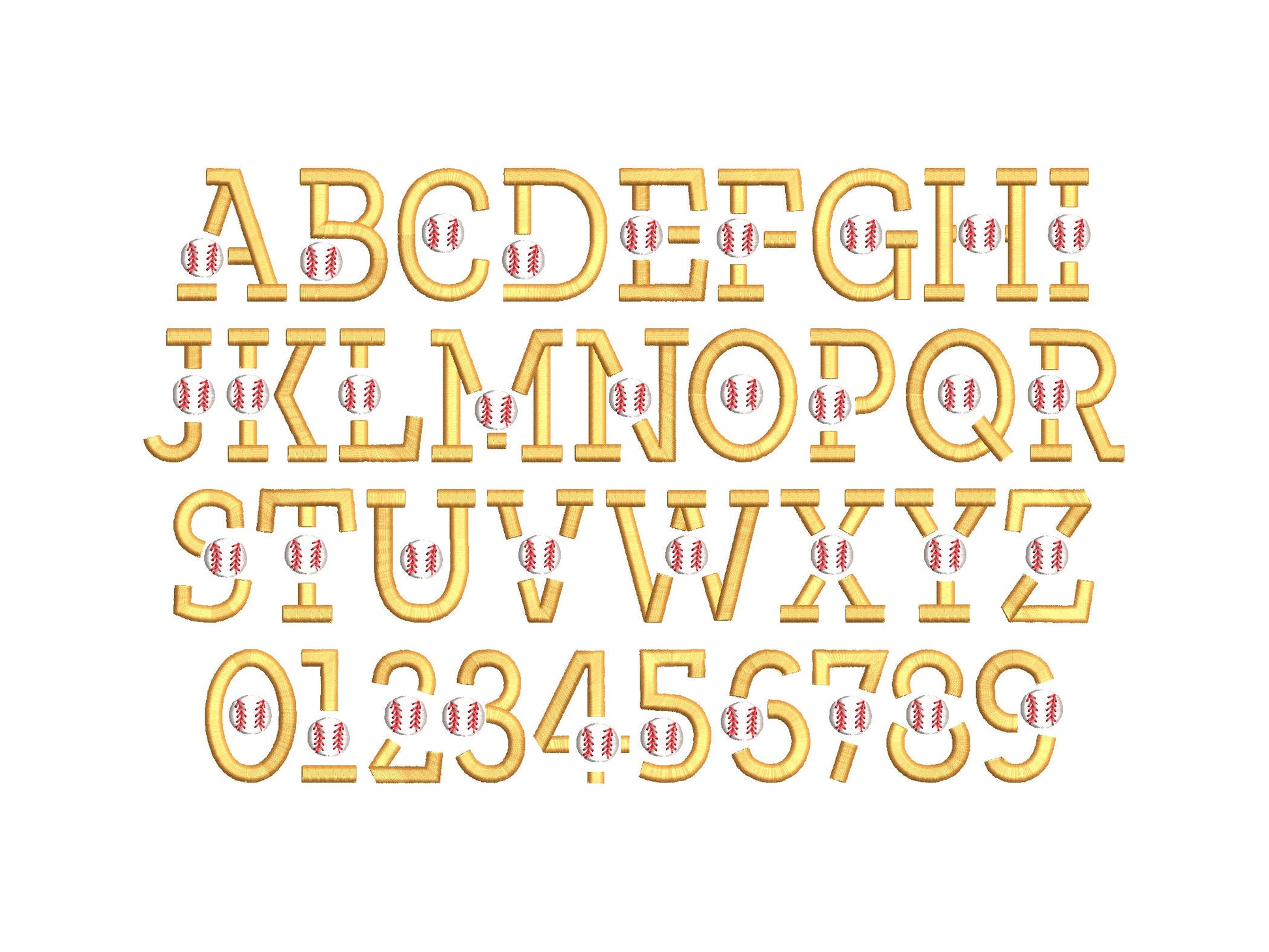 Baseball Puff Embroidery Font puffy foam machine embroidery designs 3D raised alphabet monogram Sport Block Font sizes 1.3, 1.7, 2" Whole alphabet A-Z uppercase and numbers 0-9.