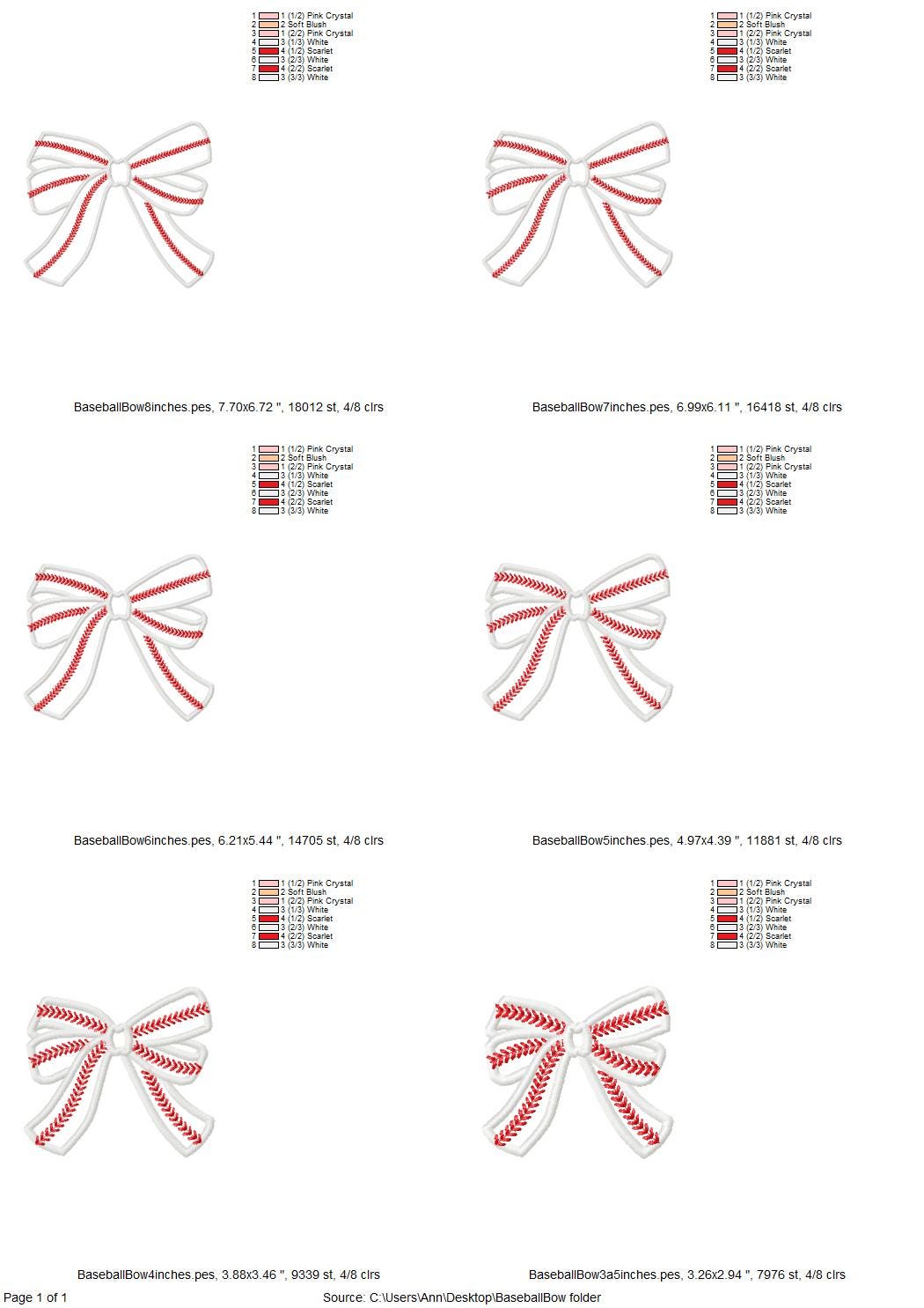 Baseball stitch Bow Applique side bow machine embroidery designs wide ribbon Sports Girly Bow from 4 to 6 inches sweatshirt seam side bow