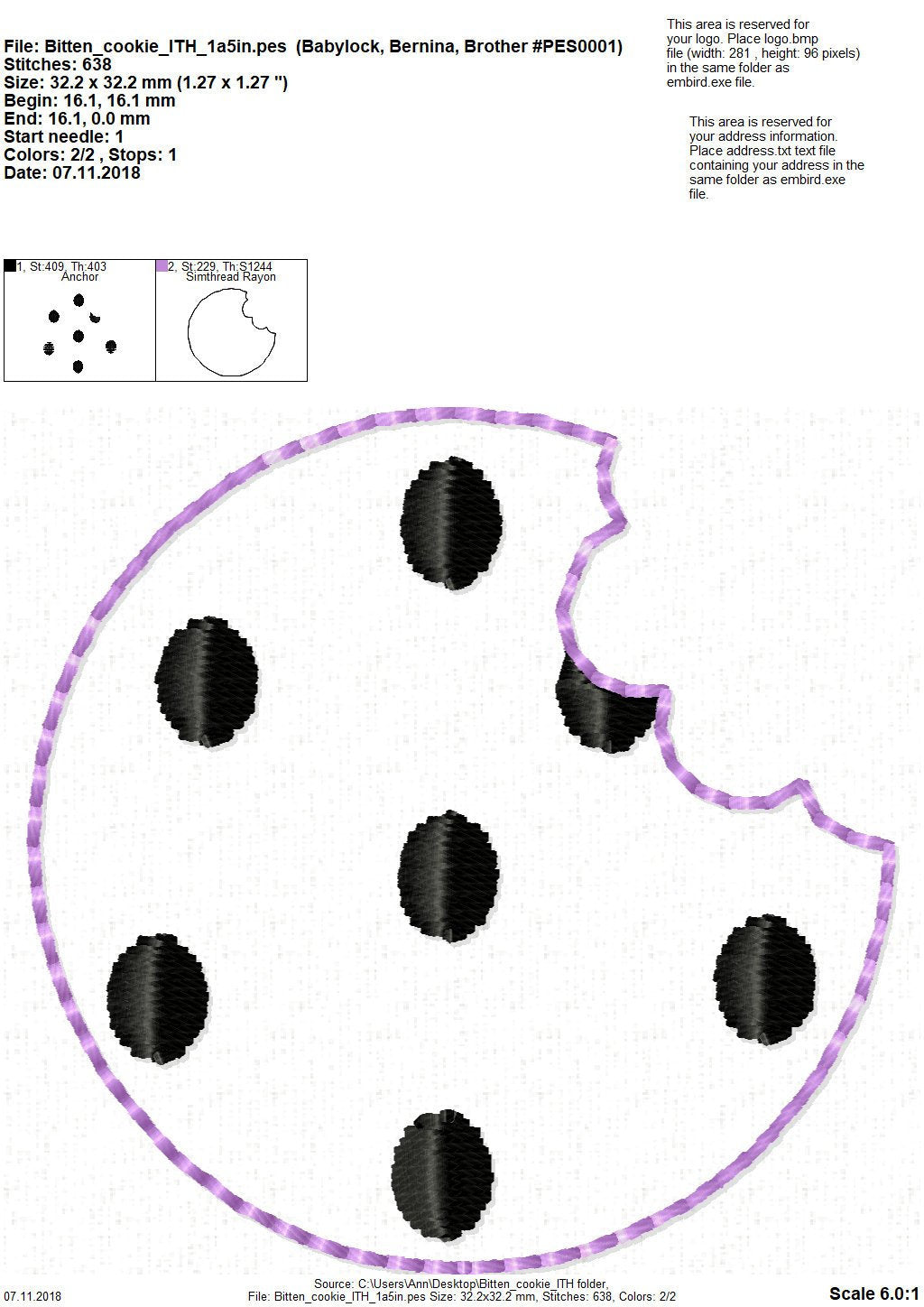 Bitten cookie, little cookie in the hoop Feltie Patch machine embroidery designs assorted MNI sizes, chocolate cookie biscuit sweet kids