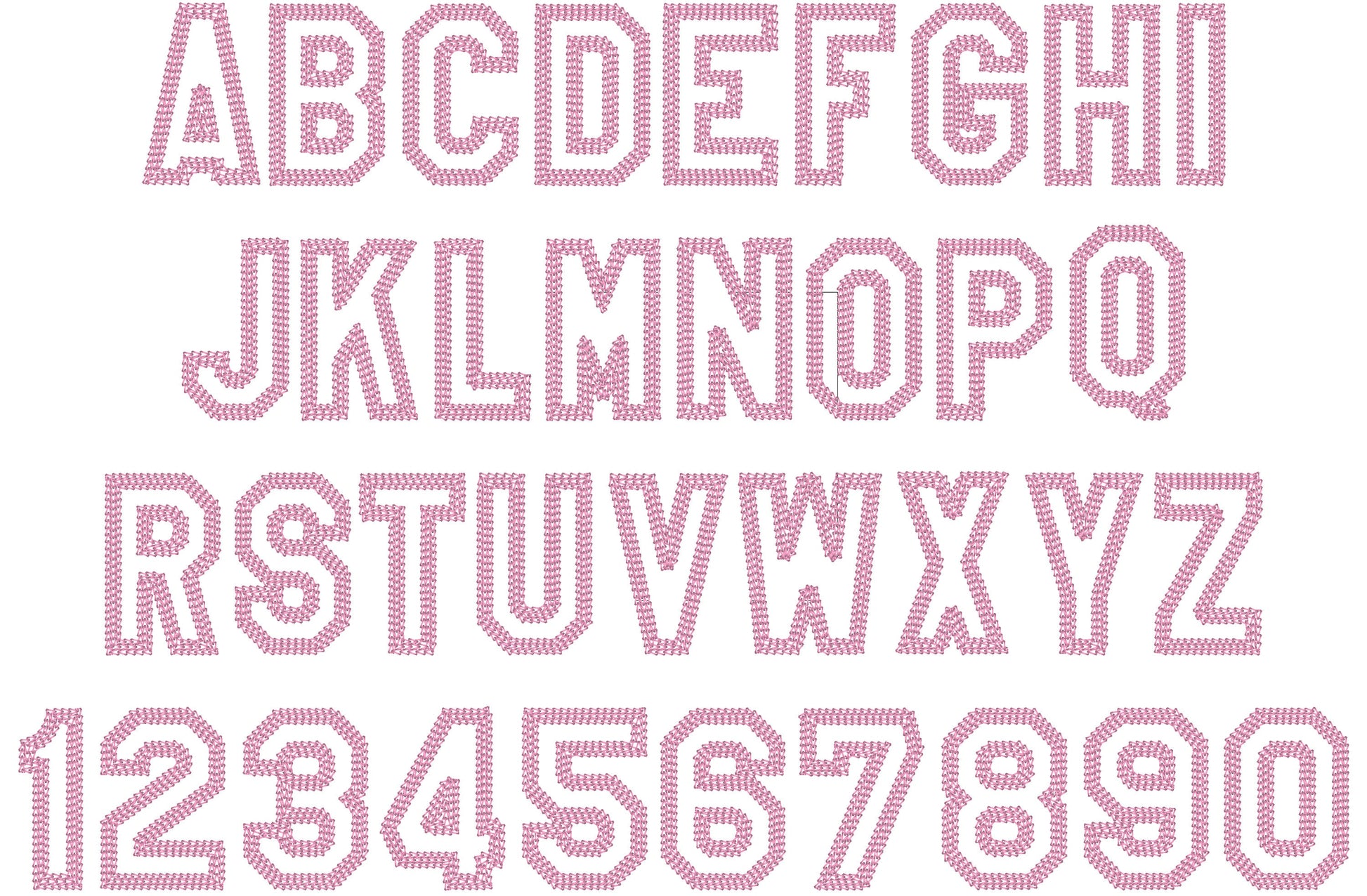 Block Wide Chain stitch outline sport Athletic collegiate alphabet Sports Font machine embroidery designs monogram sizes 1.5 up to 3.7 in BX