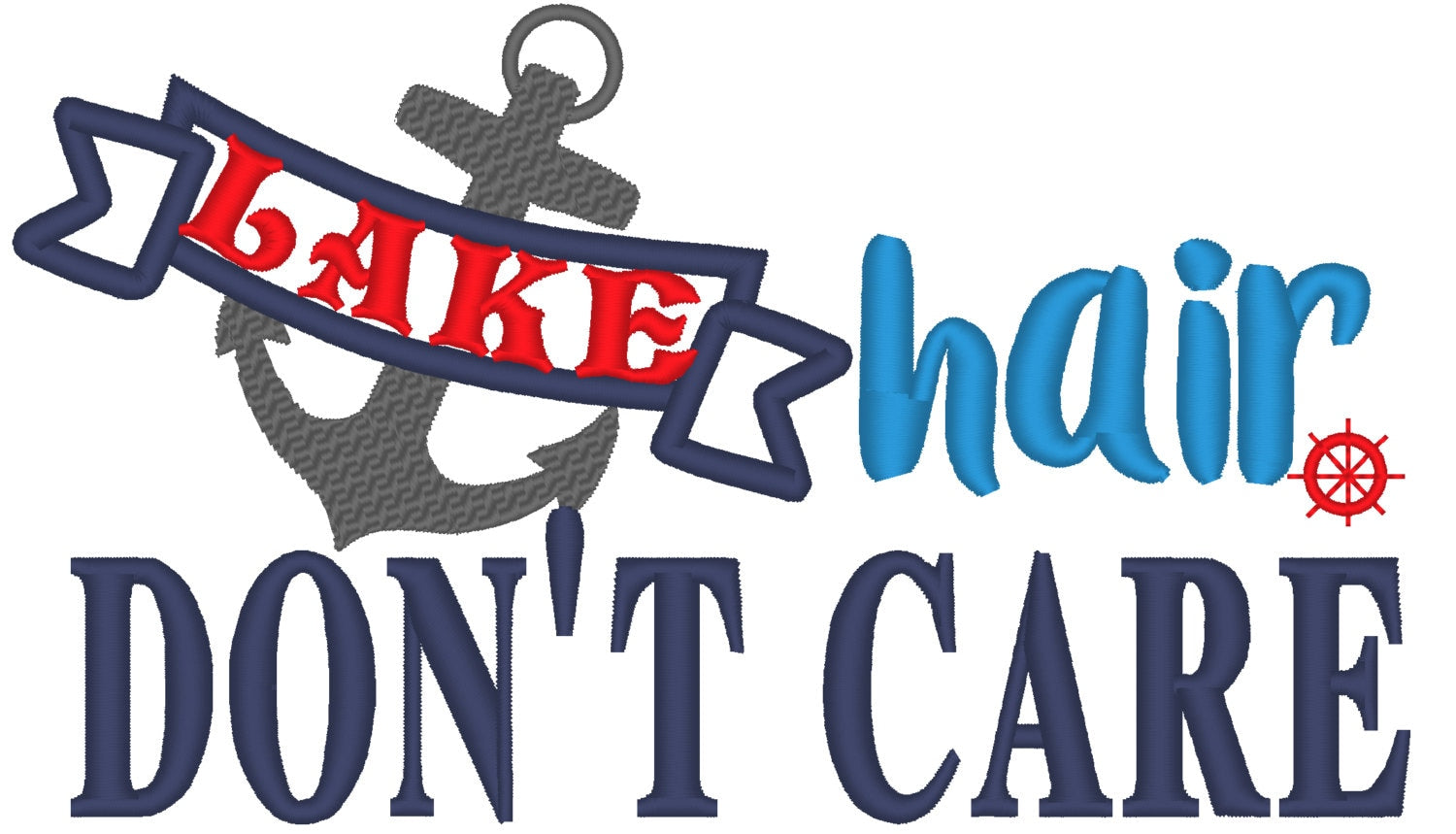 Boat lake hair don’t care, summer saying machine embroidery design, camp embroidery, hoop size 4x4 and 5x7