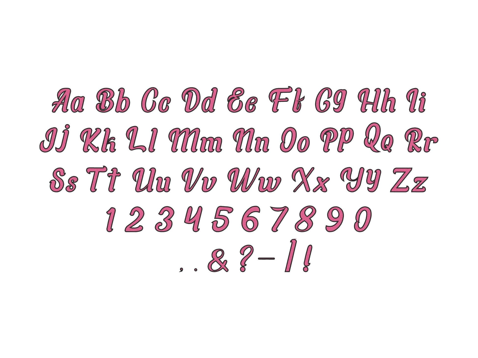 Bold cursive fill stitch and solid outline Font alphabet monogram letters machine embroidery designs in assorted sizes, girl name font, BX