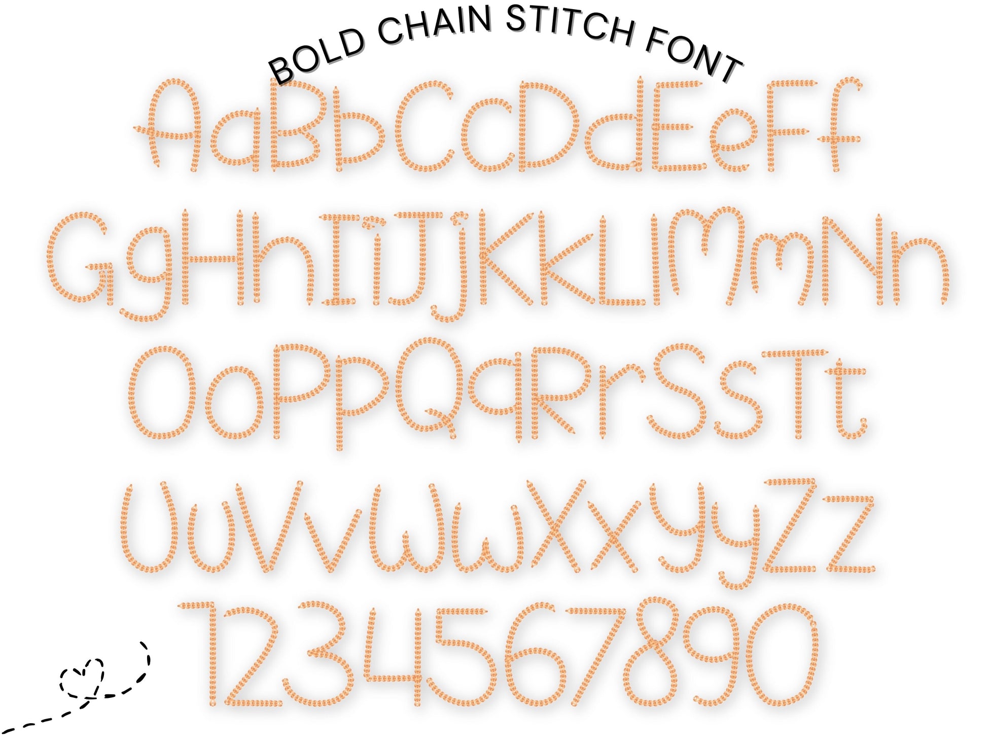 Bold Dense Chain stitch FONT machine embroidery designs in alphabet letters knit sweater handmade effect chain name, BX included