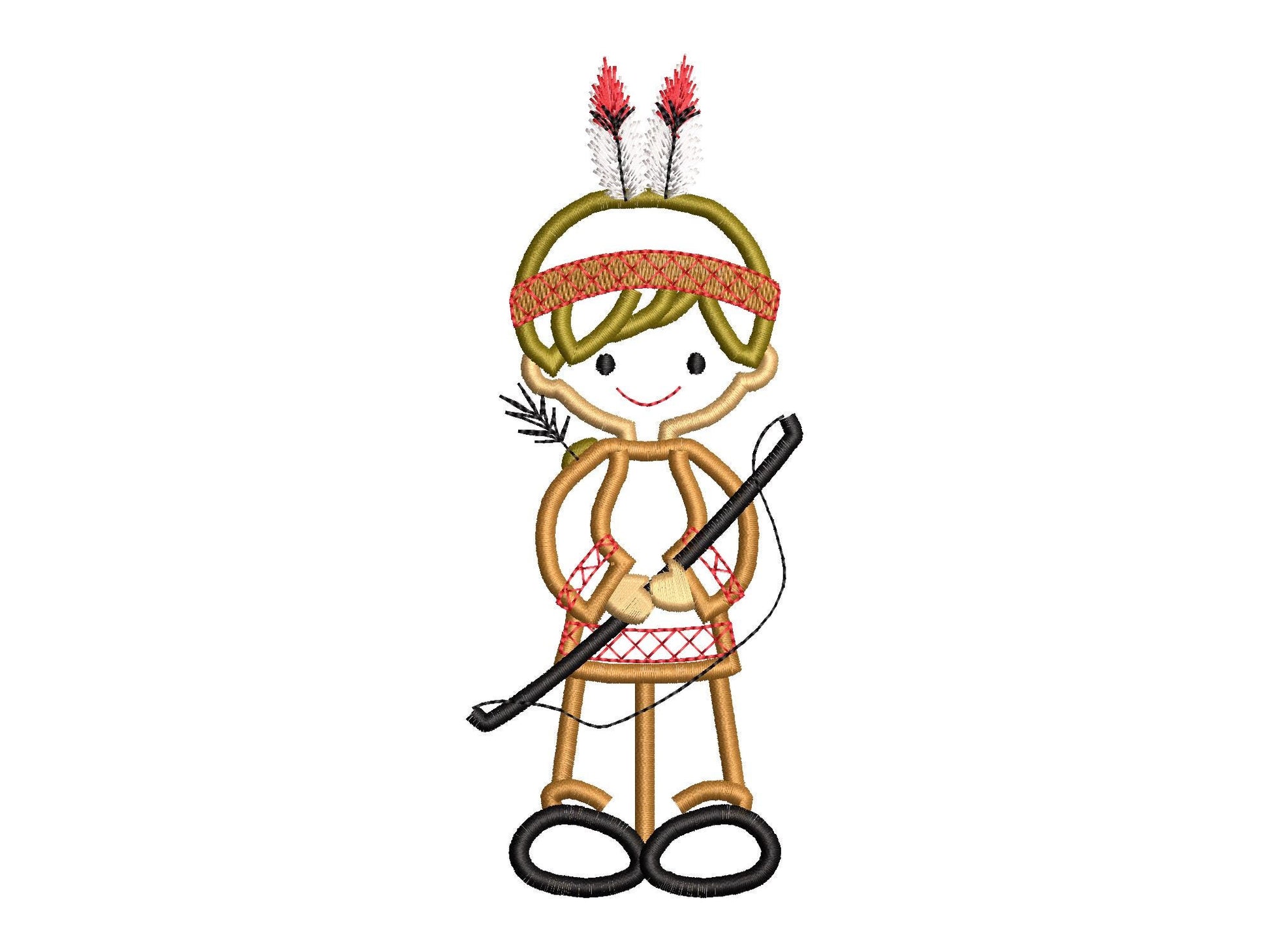 Boy Indian Applique machine embroidery designs in multiple sizes for hoop 4x4 5x7 and 6x10 little toddler boy with bow arrow feather