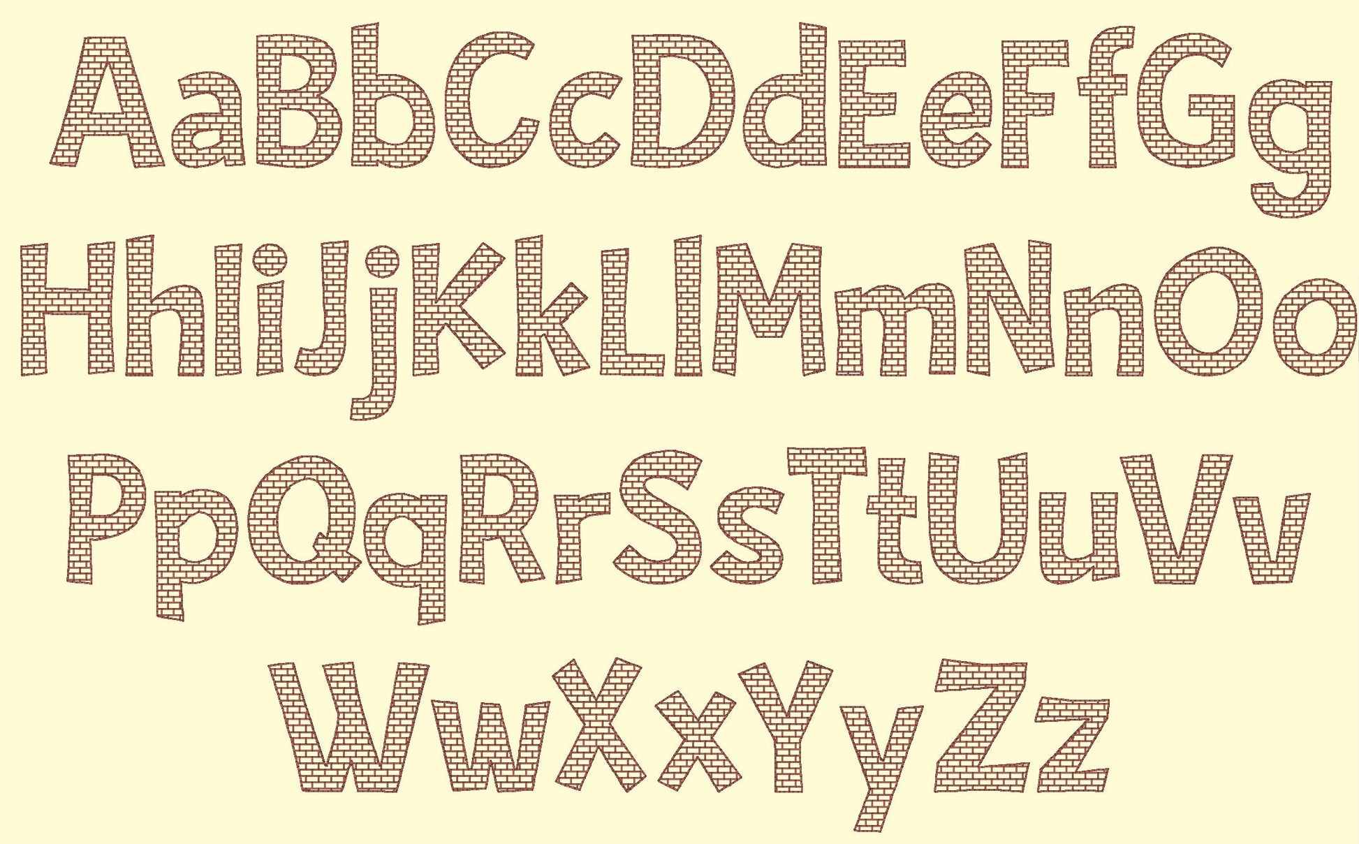 Bricks Font light sketch outline machine embroidery design font alphabet letters sizes 1.5, 2, 3, 4in BX included boy brick wall monogram