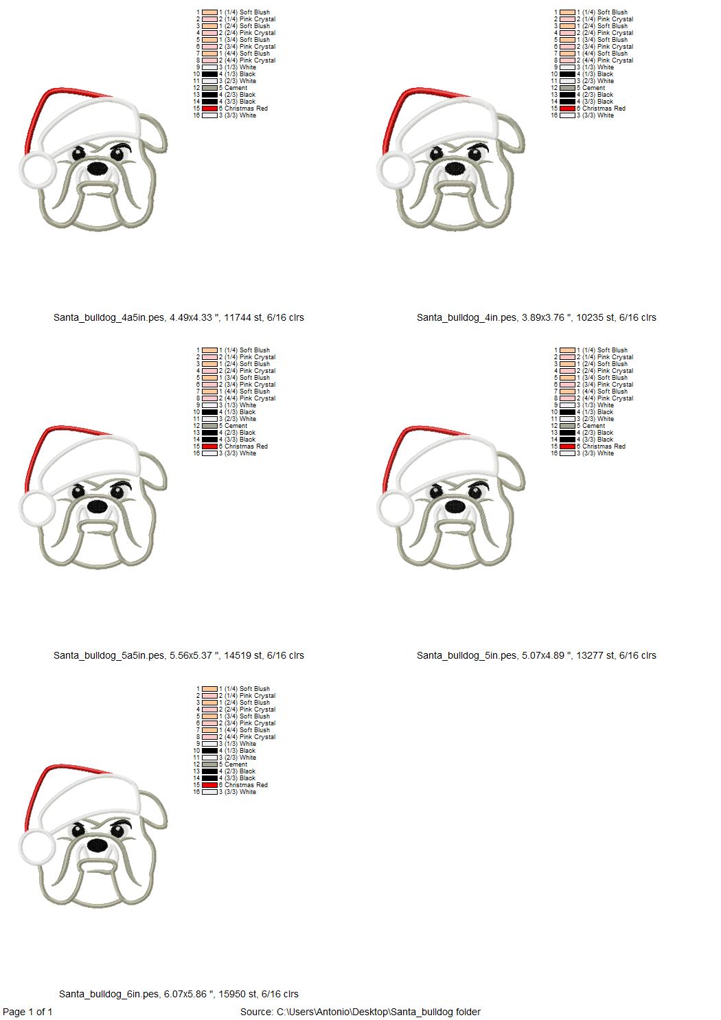 Christmas Bulldog Santa hat Applique dog face machine embroidery designs kids boys design assorted sizes