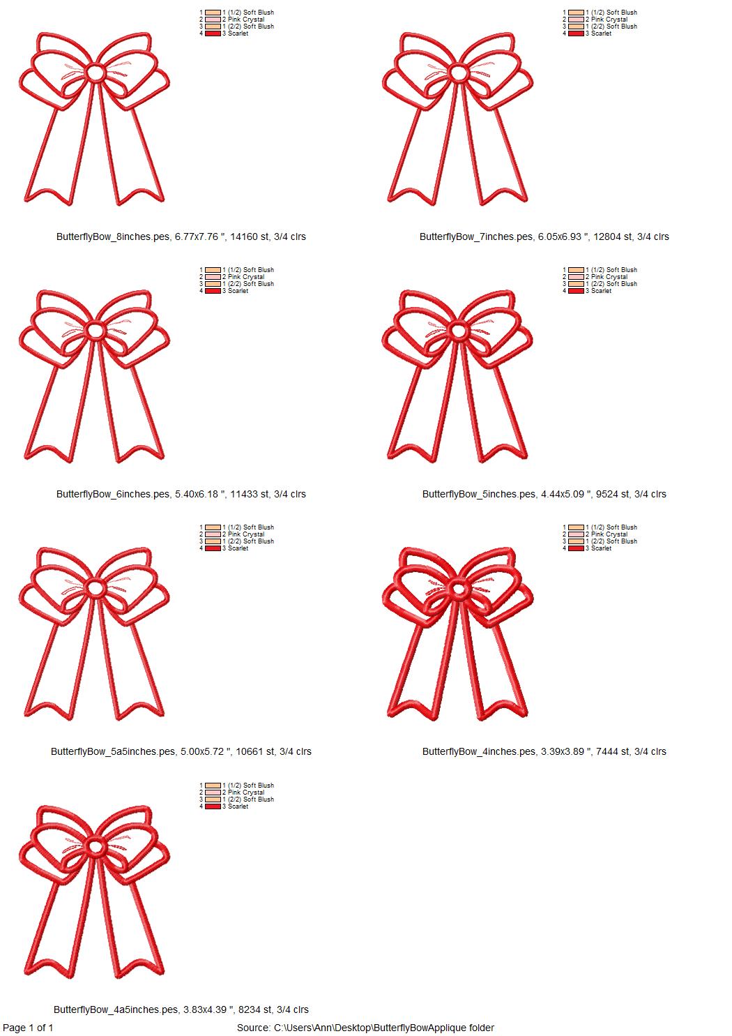 Butterfly wide bow heirloom bow applique machine embroidery designs wide ribbon Girly Bow size 4 to 8 inches sweatshirt side seam coquette