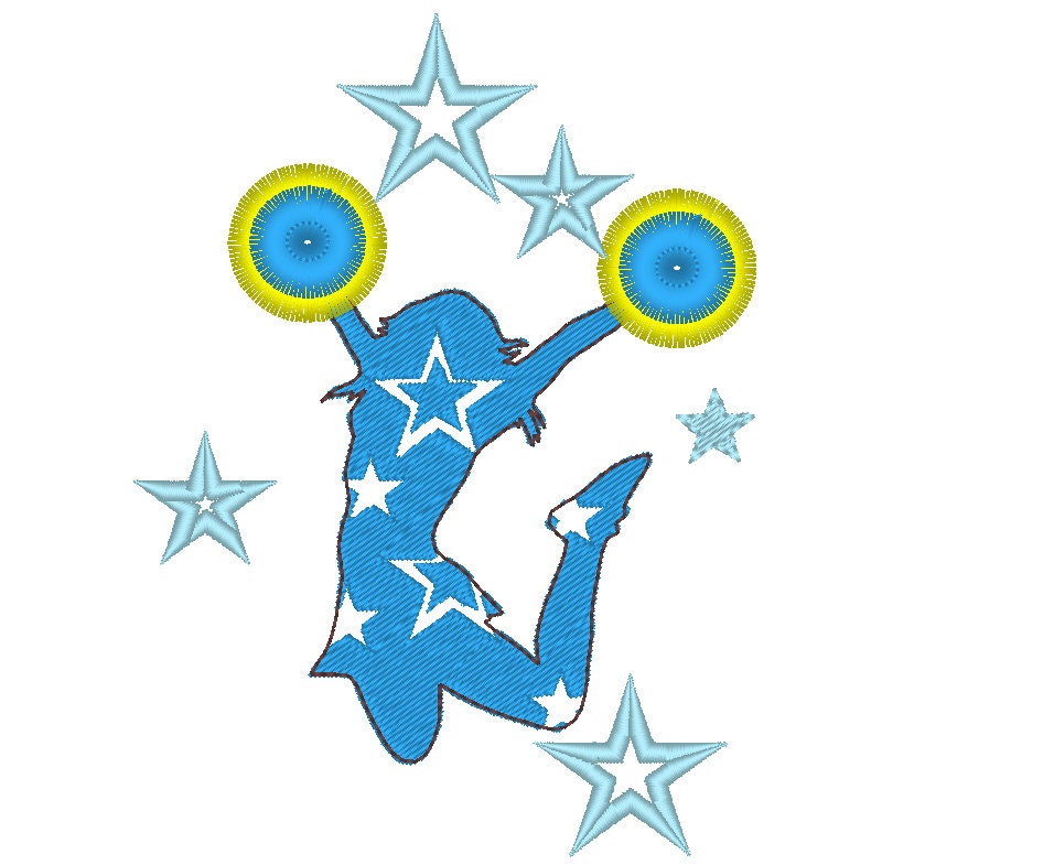 Cheerleader fringed machine embroidery designs multiple sizes for hoop 4x4 and 5x7 kids girl dancer sport cheerleader girl with stars