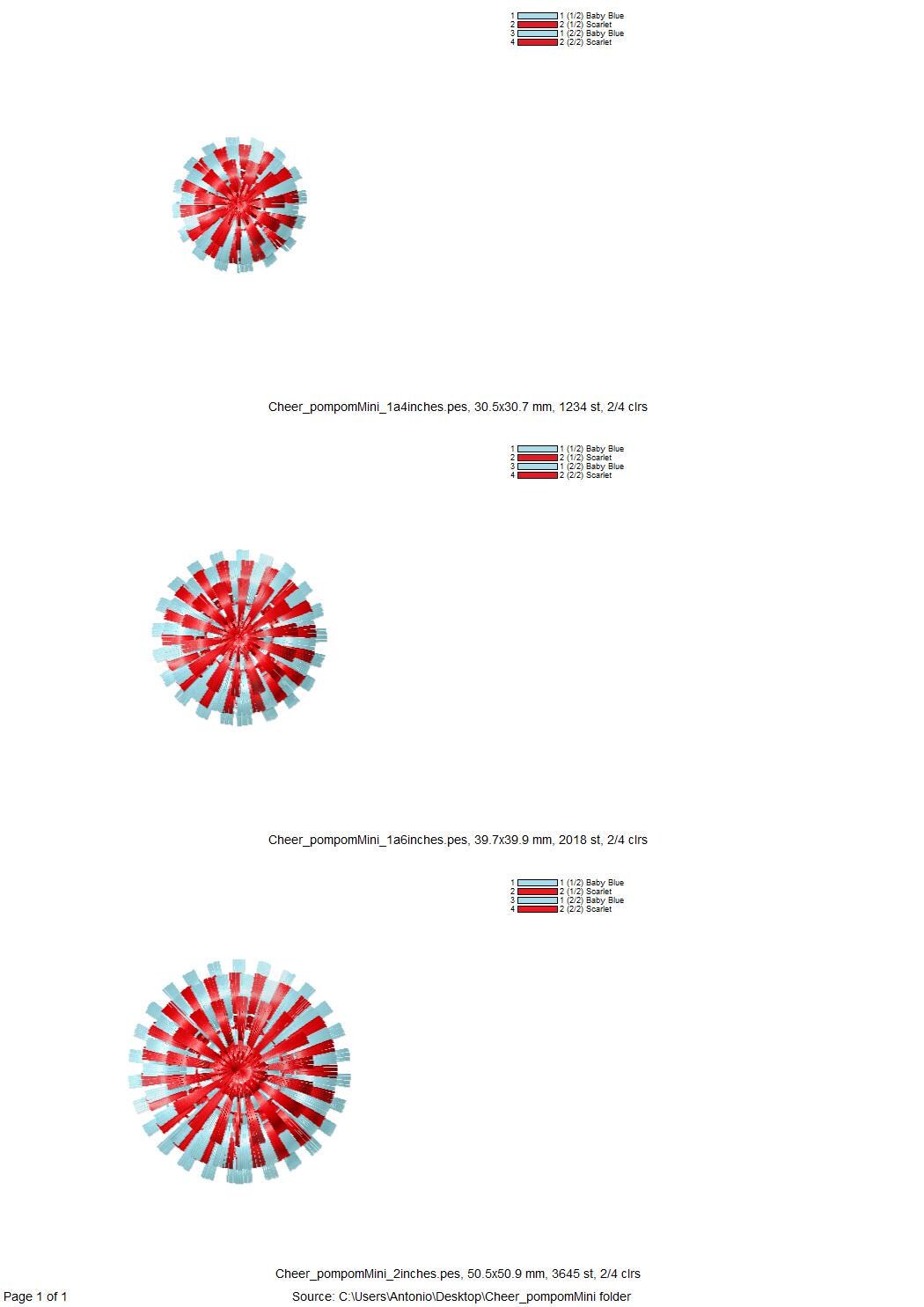 Cheerleader PomPom fringed Cheer Sports Pom Pom fluffy fur chenille machine embroidery designs mini sizes 1.4 up to 2in fringe in the hoop