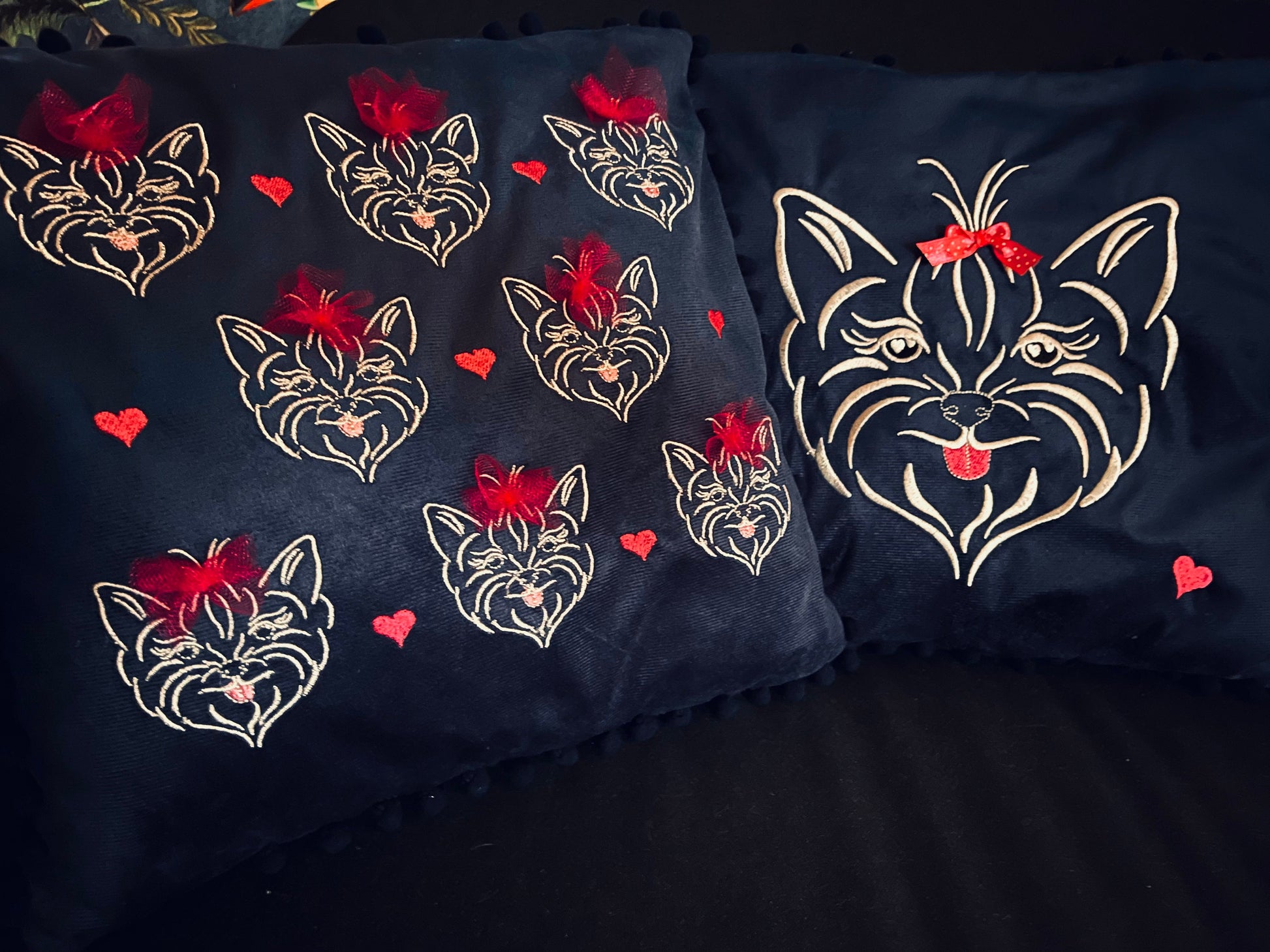 Chihuahua Dog pet little puppy machine embroidery designs in multiple sizes 4, 5, 6, 7 and 8 inches, satin stitch outline silhouette & heart