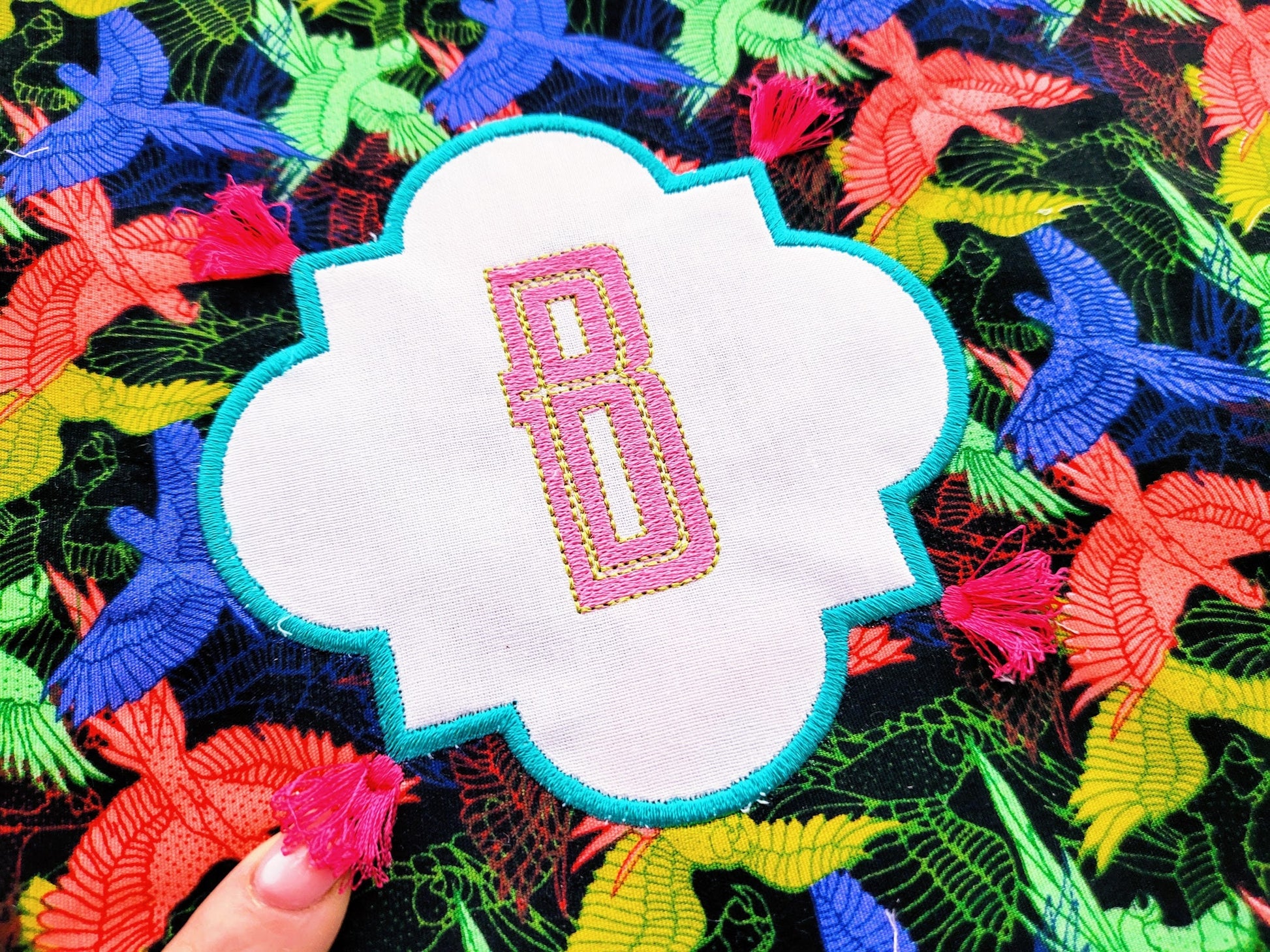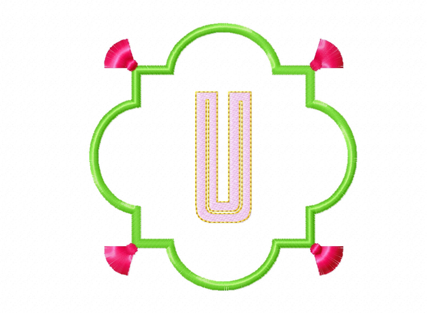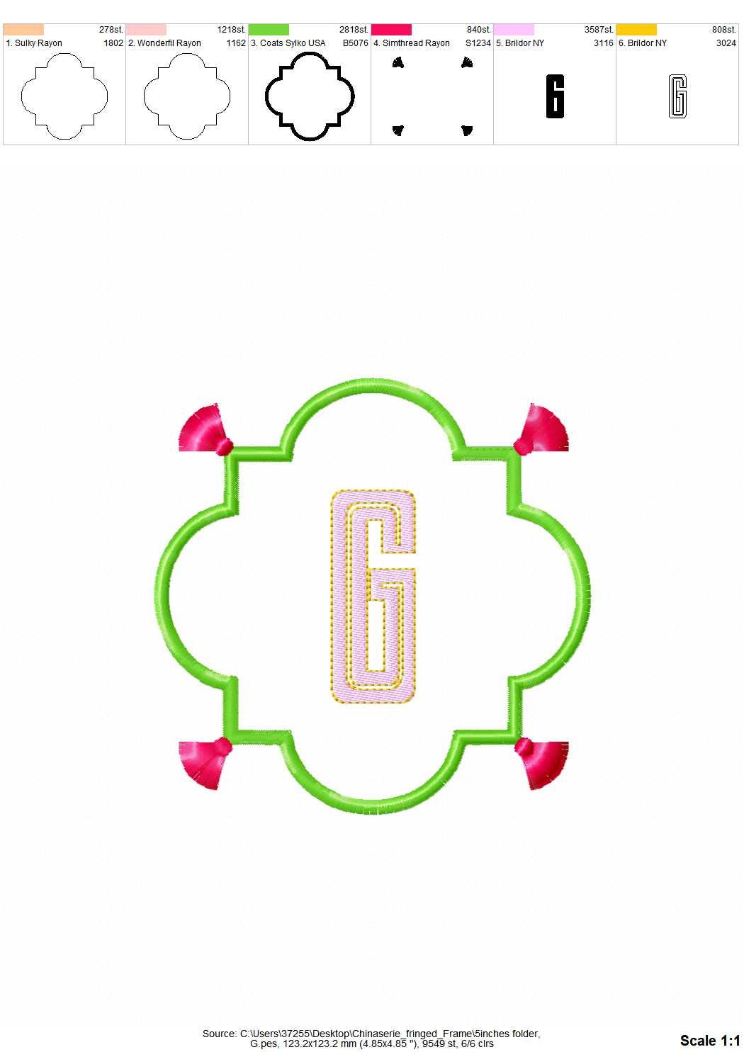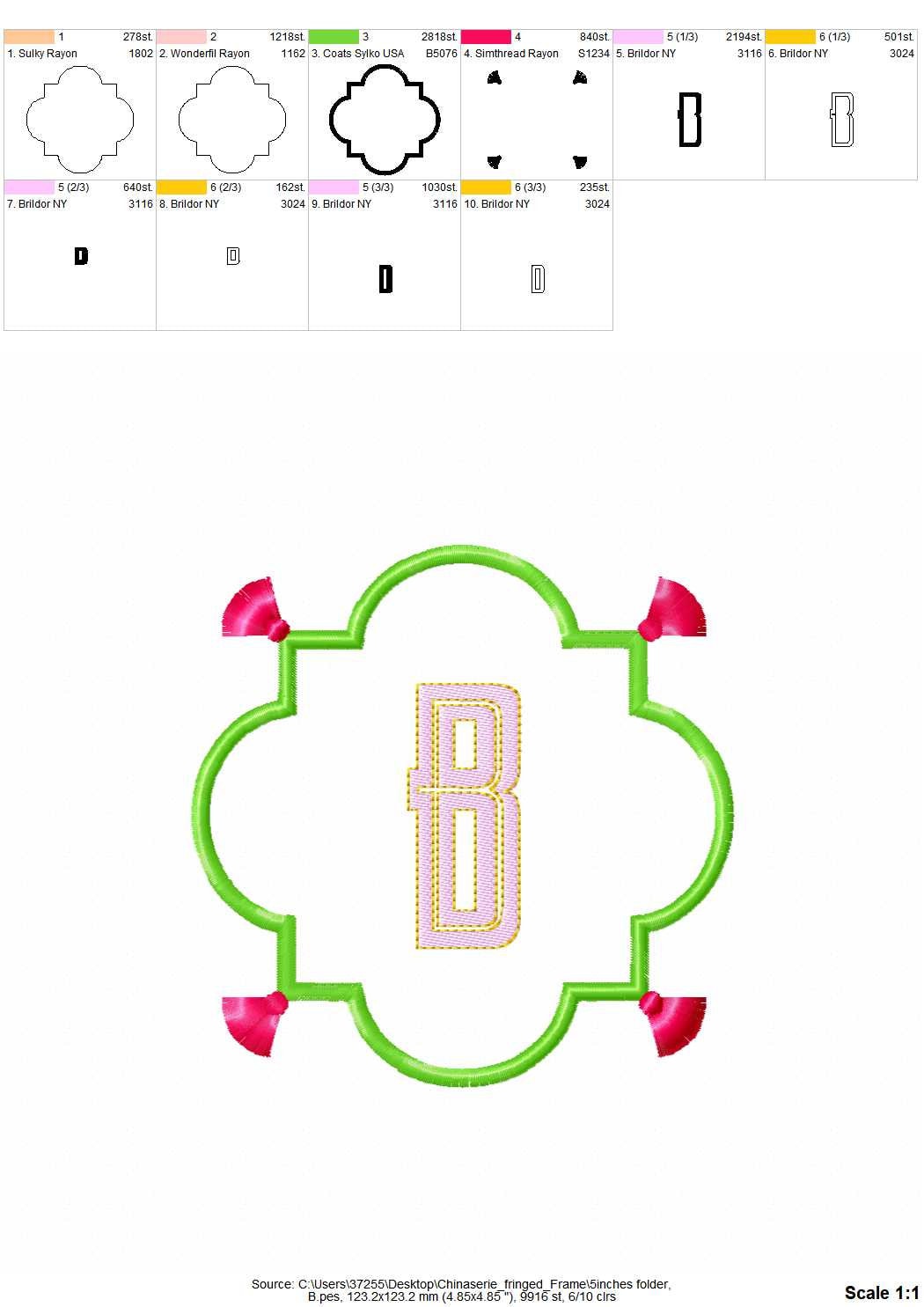 Chinoiserie appliqué Monogram fringed tassel frame and initials A-Z, bath towel kitchen towel pillow garden flag machine embroidery designs ITH project machine embroidery designs.