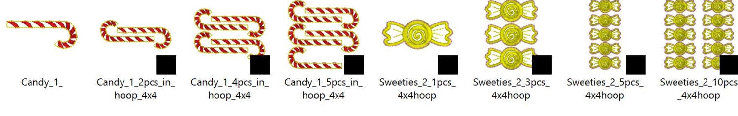 Christmas Candies, ITH in the hoop - machine embroidery designs - 2 types Candies are lined