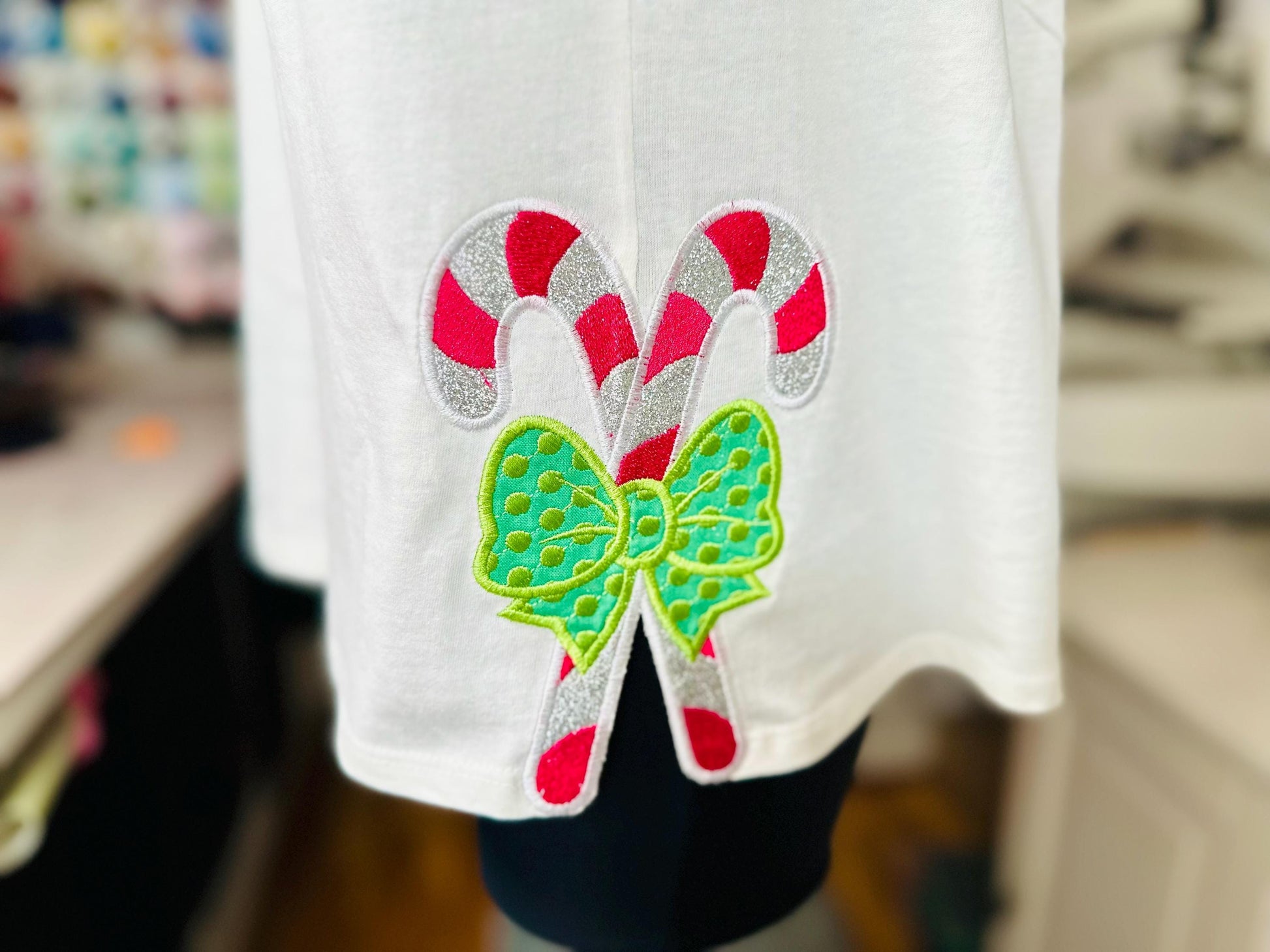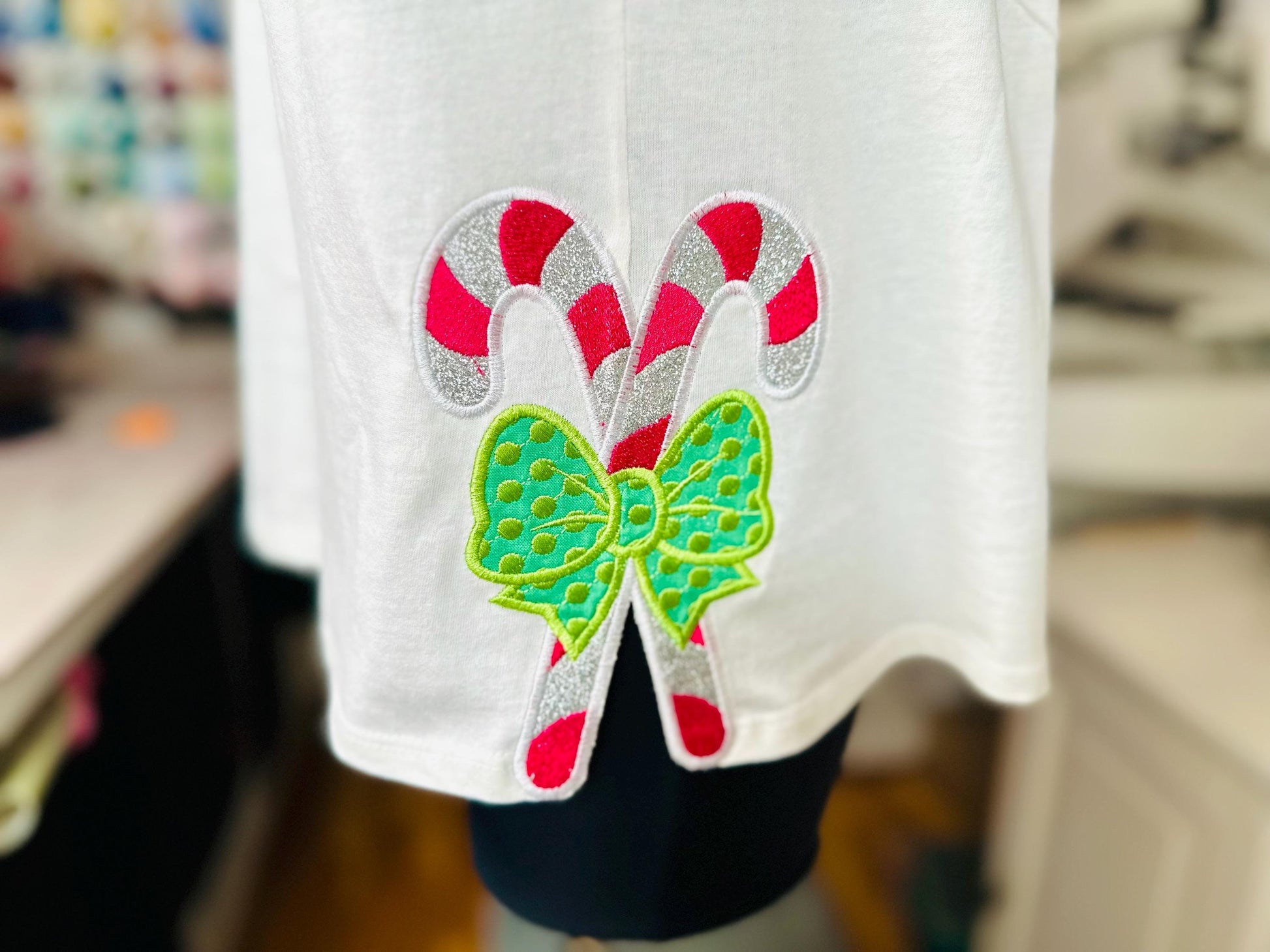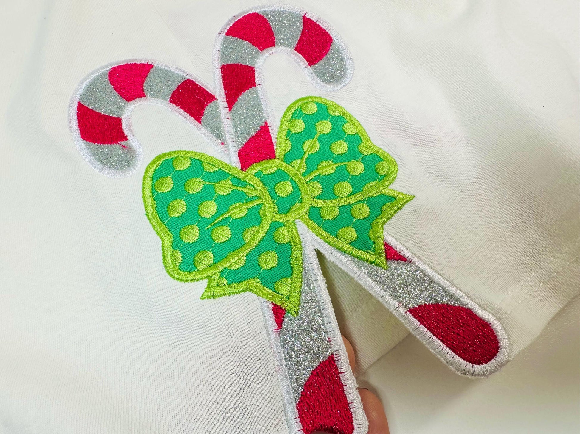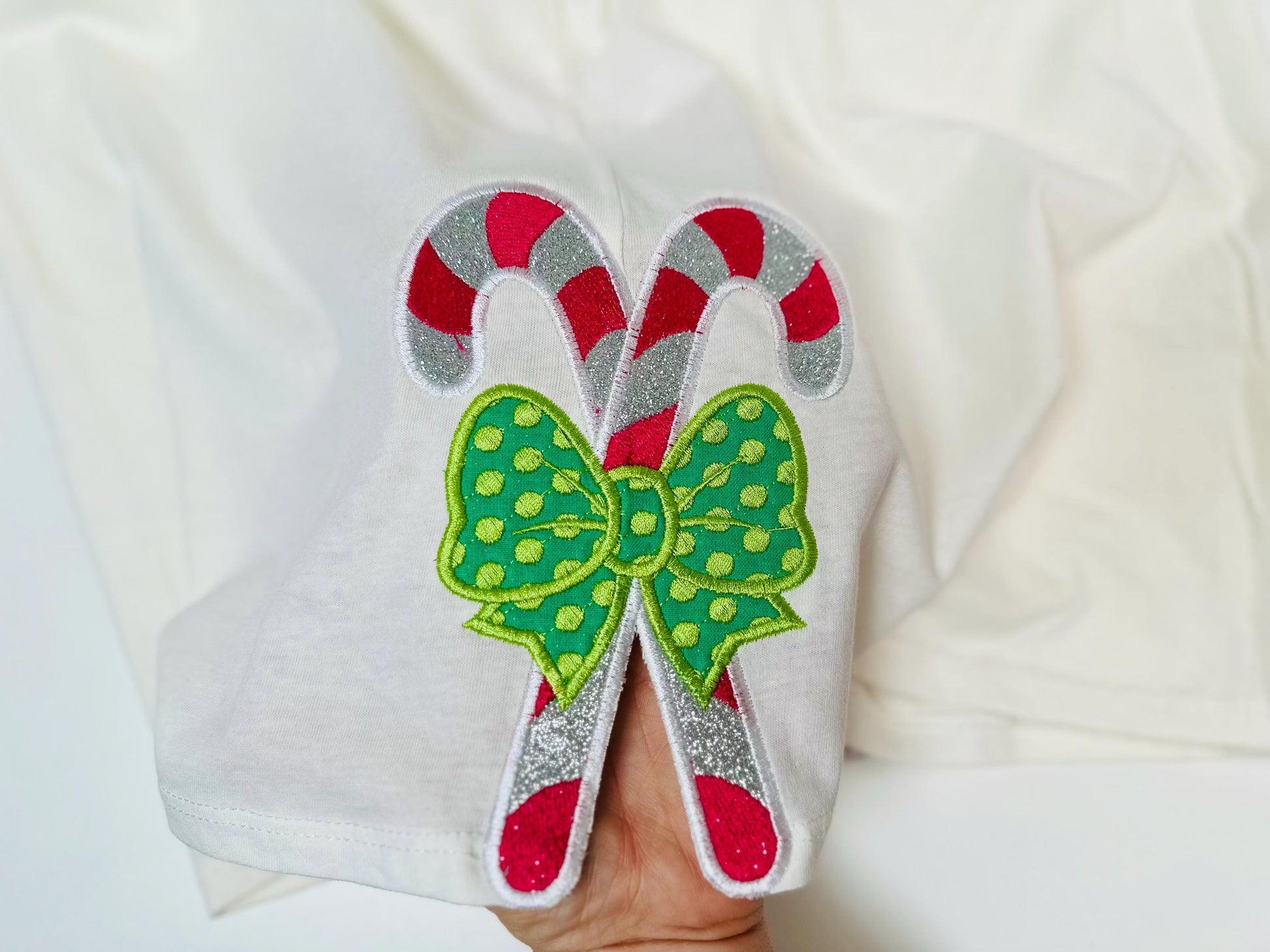 Christmas Candy Bow machine embroidery designs multiple sizes Polka Dot side bow split seam sweatshirt t-shirt kids outfit candies design