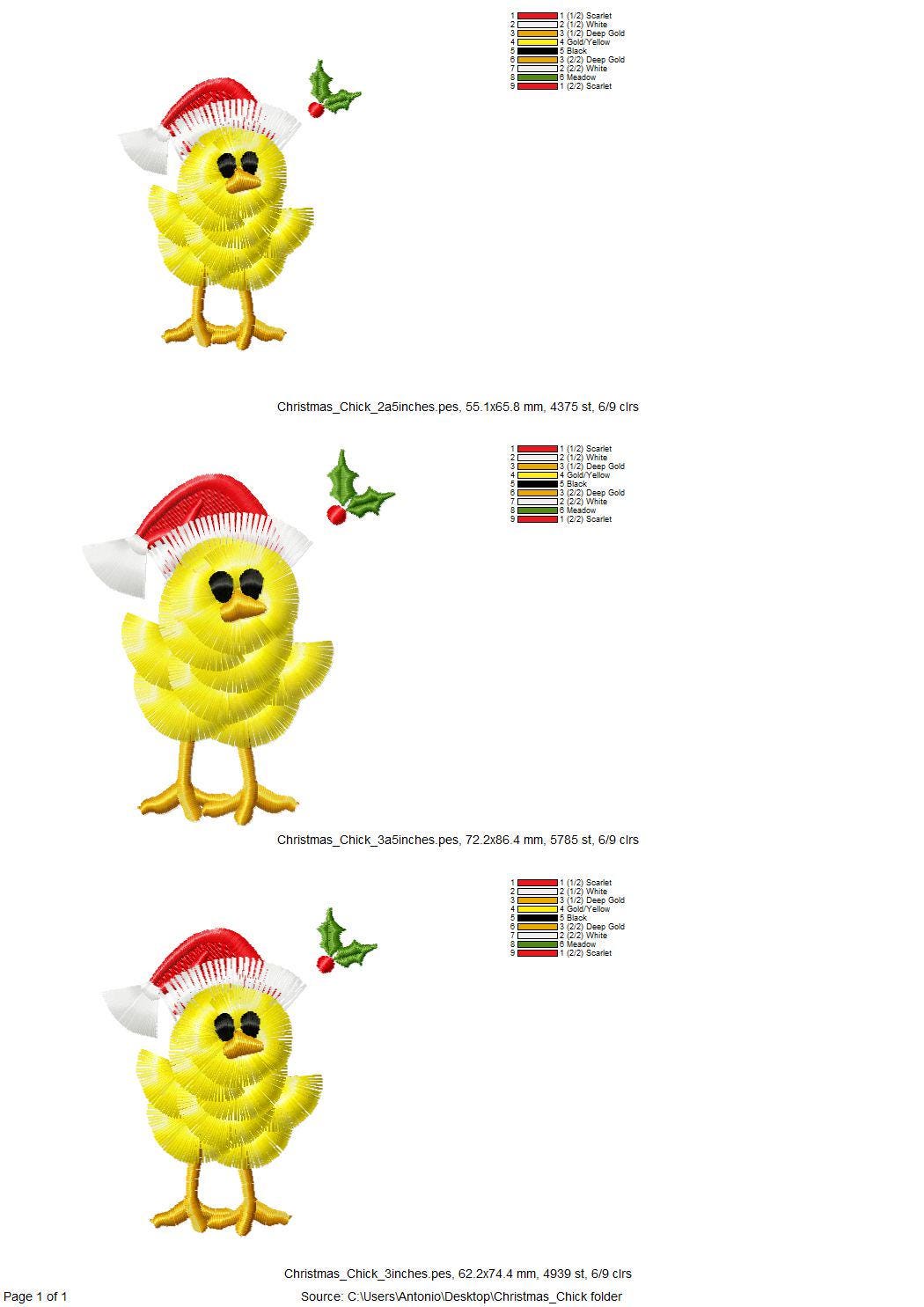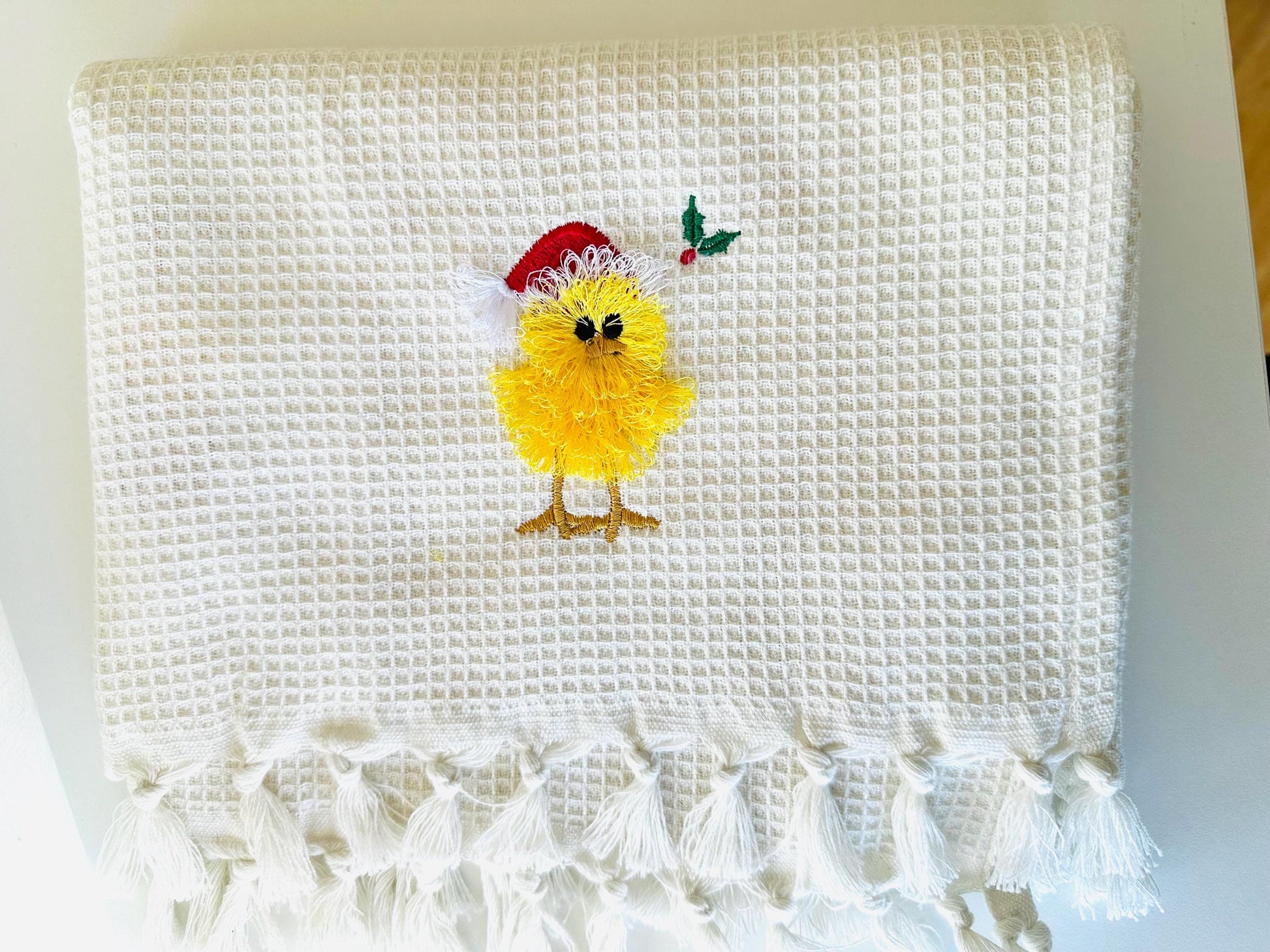 Christmas Chick fringed fur chenille fluffy Chick with Santa Hat farm bird mini machine embroidery designs fringe chicken kids baby 3, 3.5in