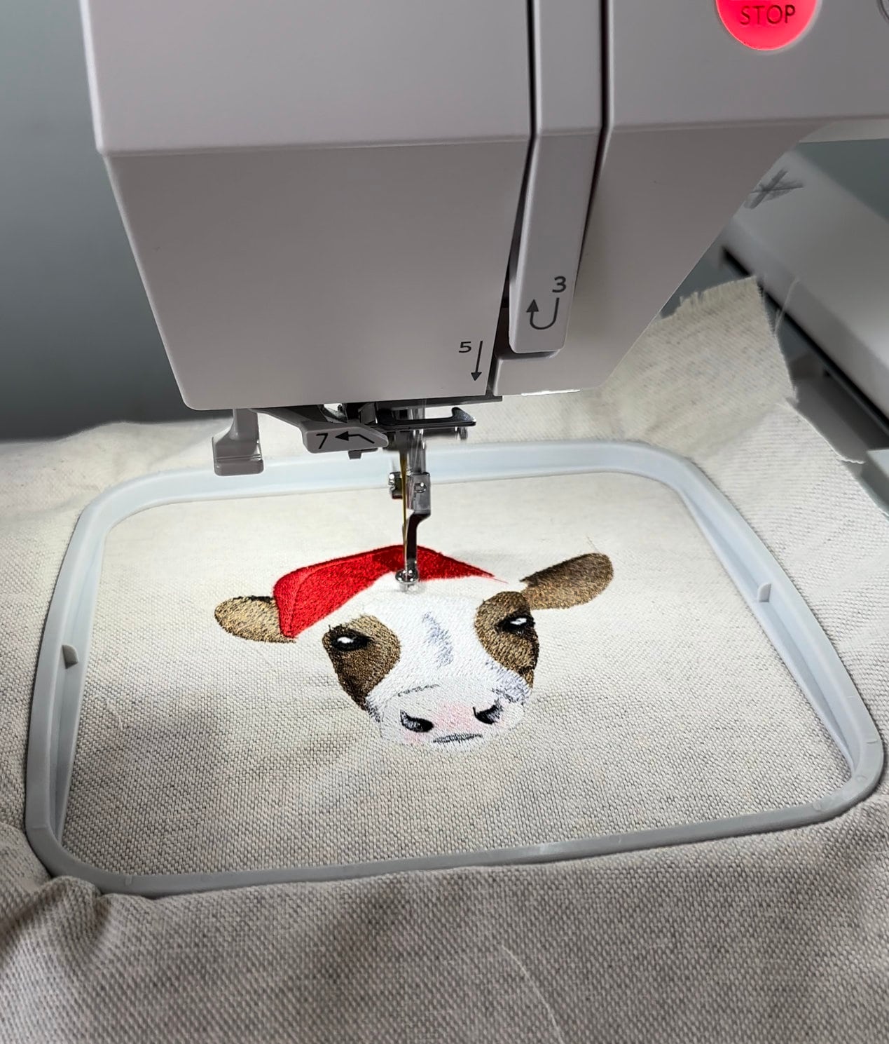 Christmas Cow face Cow head Santa hat fringed machine embroidery design heifer cow farm animal fringe in the hoop ITH 4, 4.5, 5, 5.5" Hoop Sizes