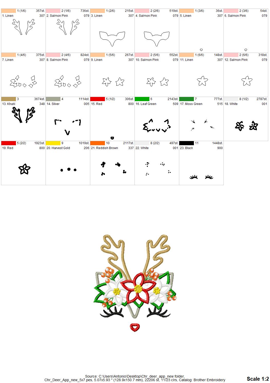 Christmas Deer head with floral crown Applique machine embroidery designs deer face kids girls design