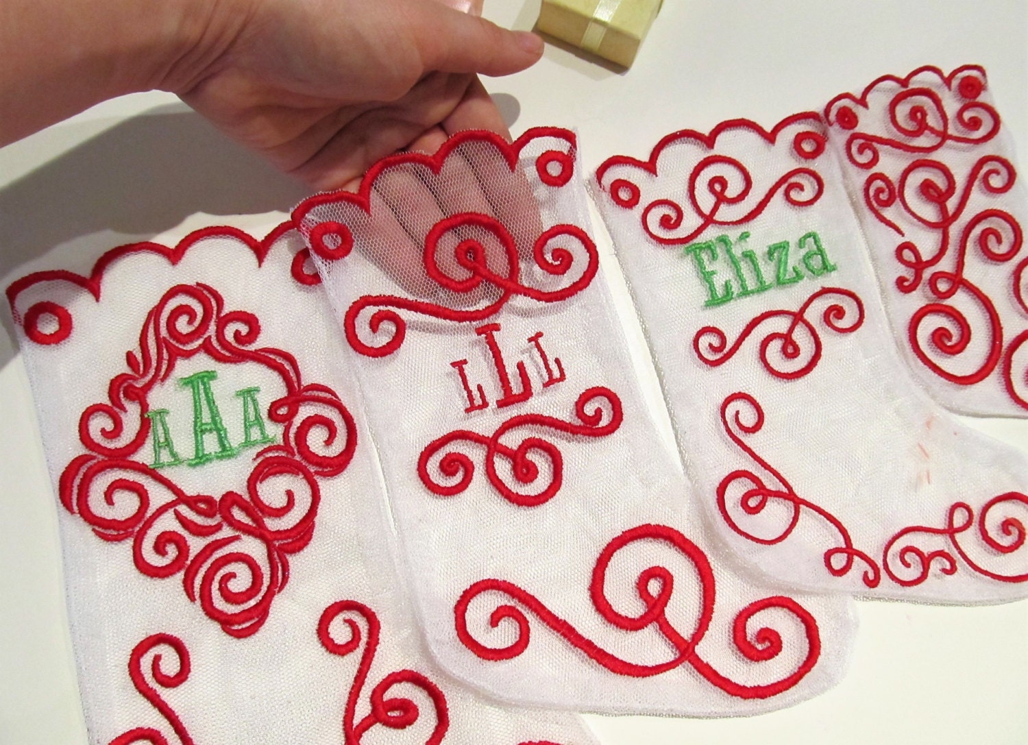 Christmas lace transparent Stockings - In The Hoop Machine Embroidery appliqué design all done In-The-Hoop, for hoops 5x7 and 6x10