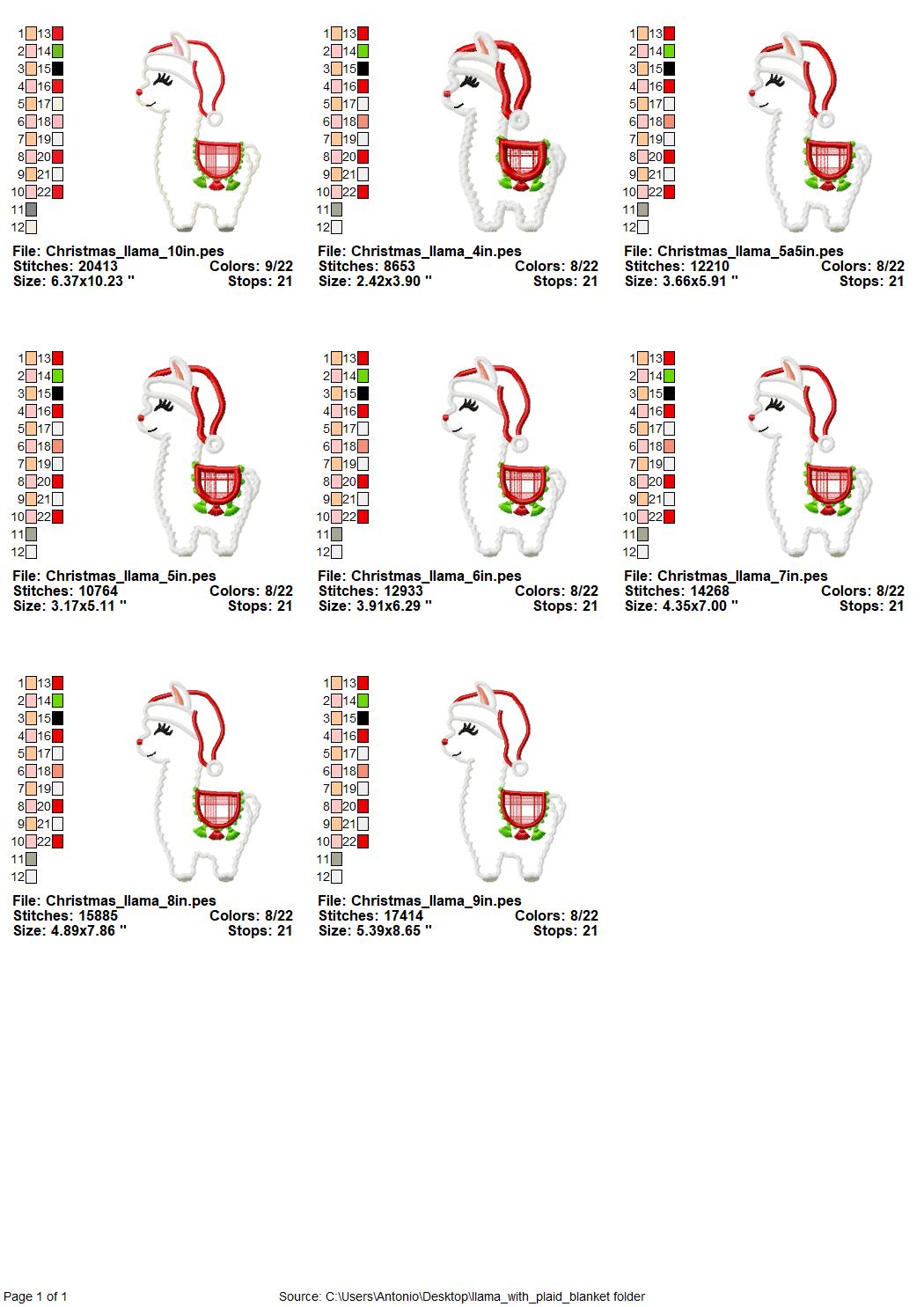 Pretty llama applique embroidery Llama or alpaca with plaid blanket and Santa Christmas hat machine embroidery designs Merry Christmas