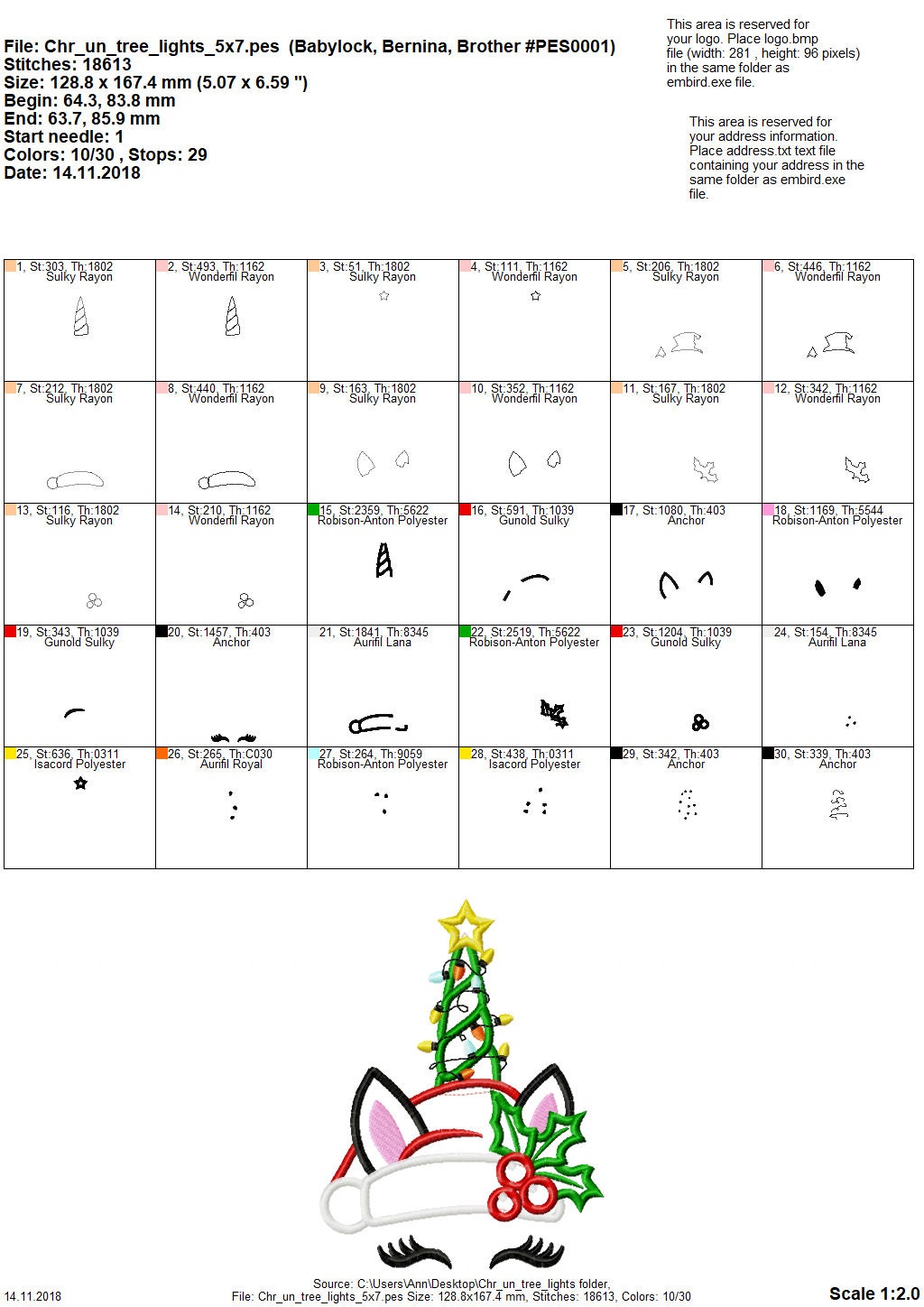 Christmas Unicorn head with Christmas tree and lights applique machine embroidery designs unicorn faceMerry Christmas