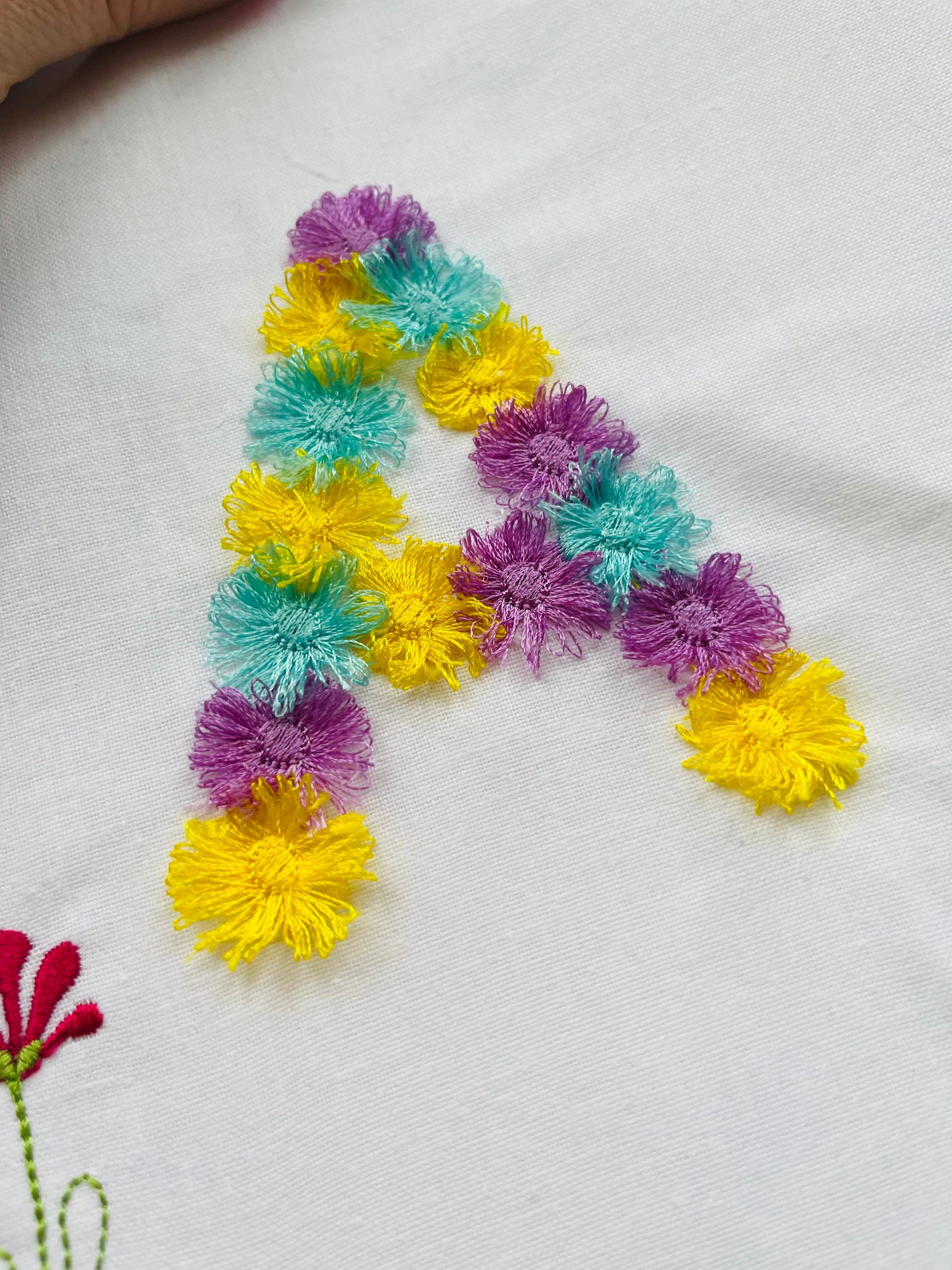 Circle Fringed FONT alphabet letters machine embroidery designs in assorted maxi sizes kids name pretty fluffy letters monogram, BX included