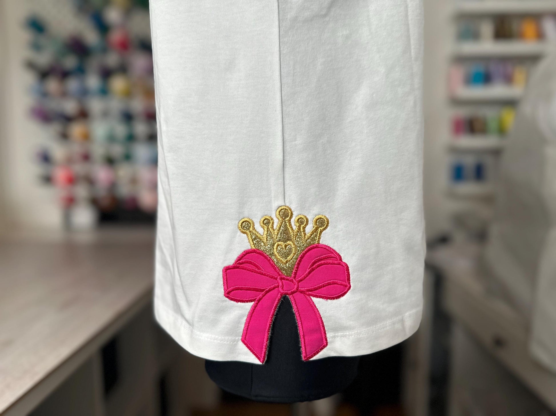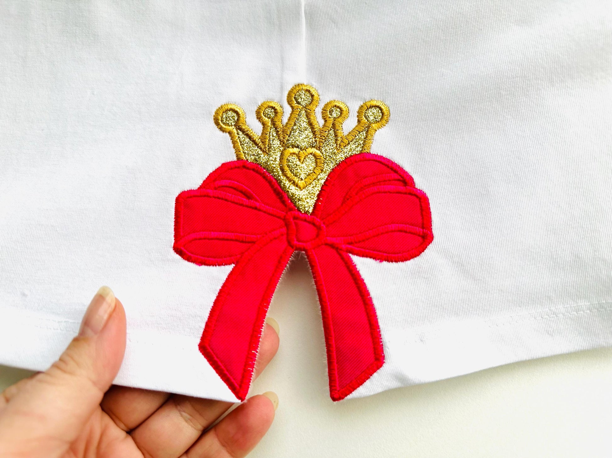 Classic Bow and Crown Diadem Tiara for little Princess Applique machine embroidery designs ribbon side split seam Girly Bow in many sizes