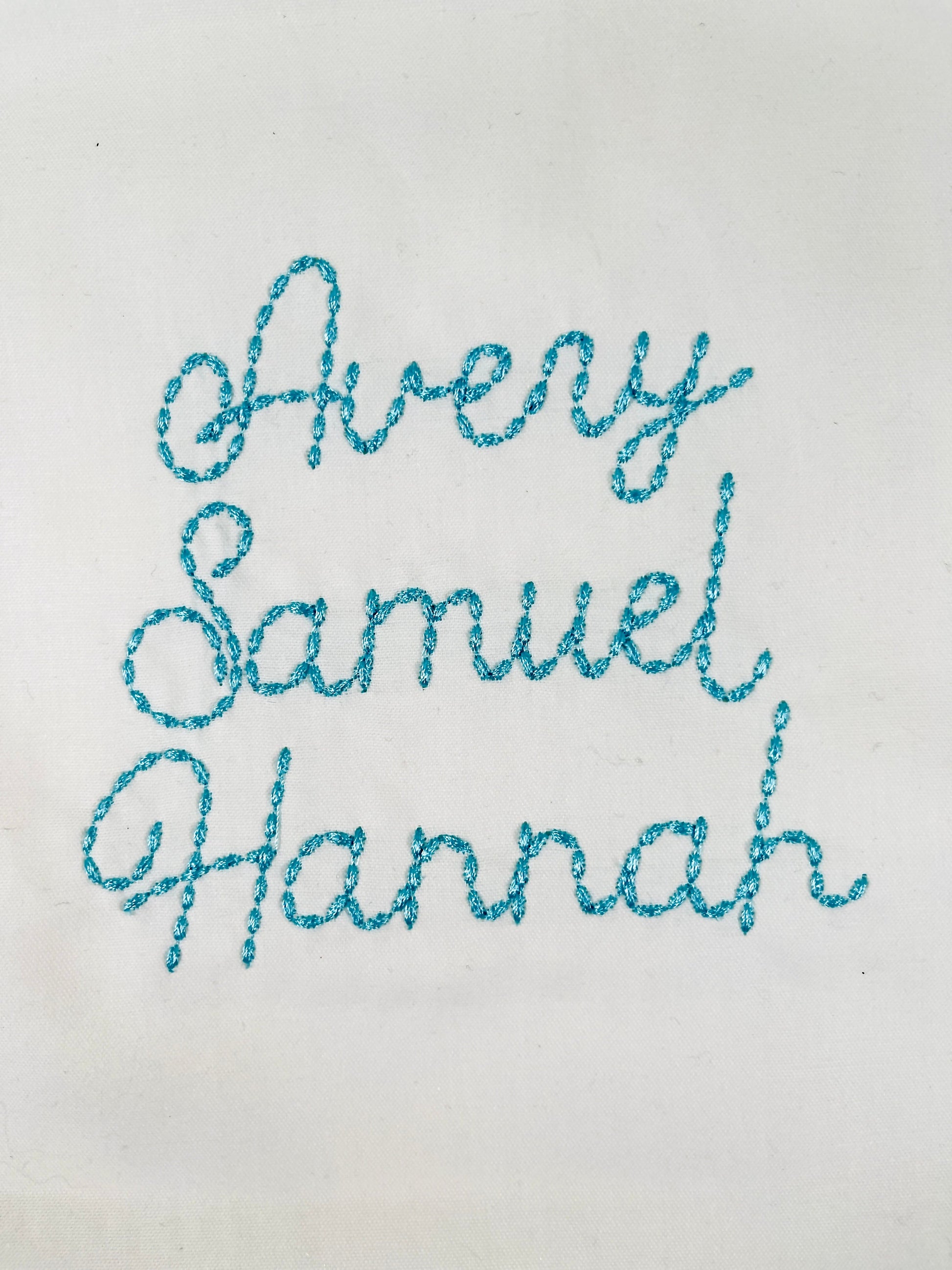 Load the letters into your software or use the individual files directly on your machine to easily create and stitch custom words or monograms.