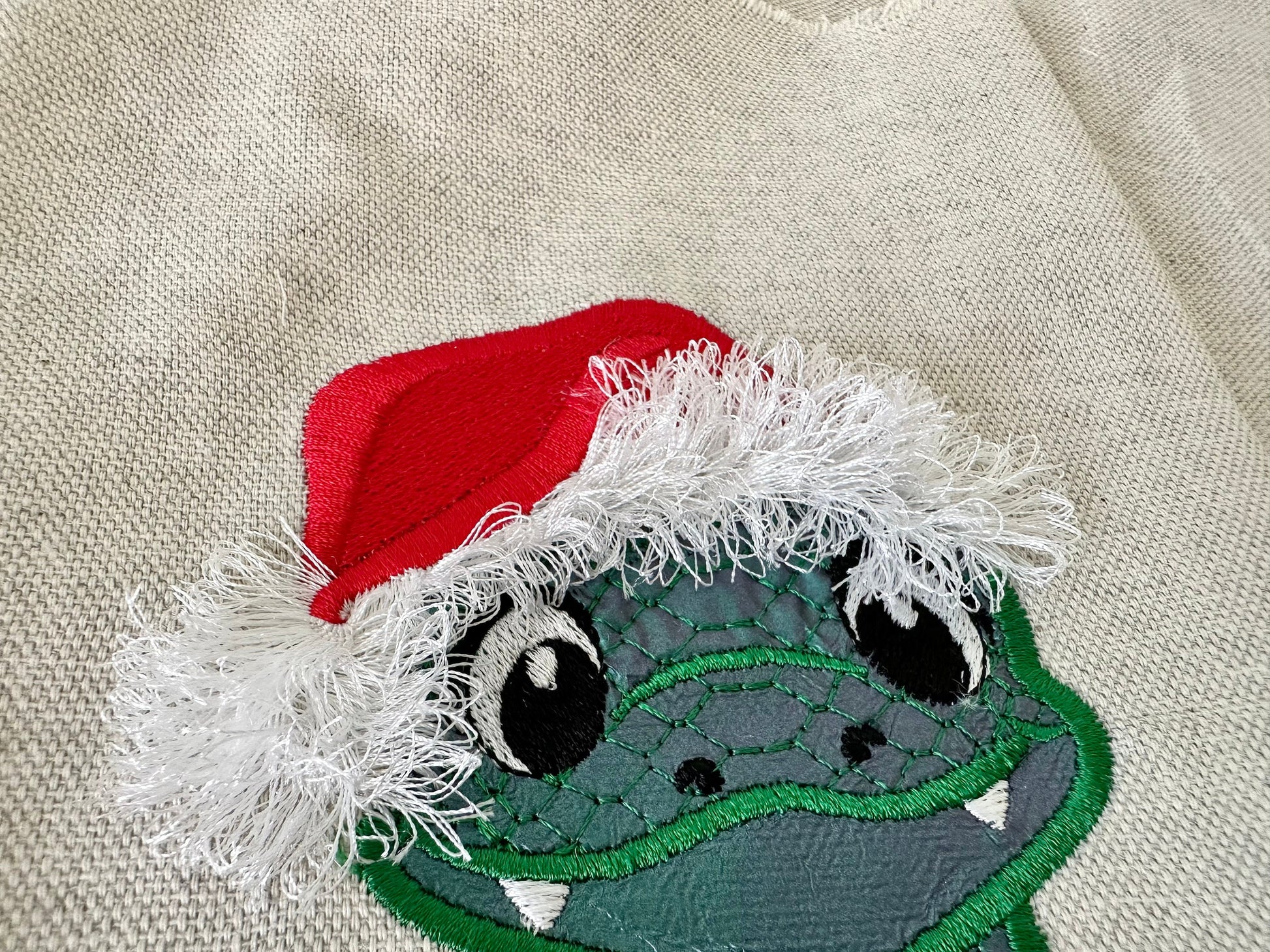Crocodile Santa Hat fringed fluffy hat Applique machine embroidery design kids baby croc alligator gator in hat Merry Christmas ITH design
