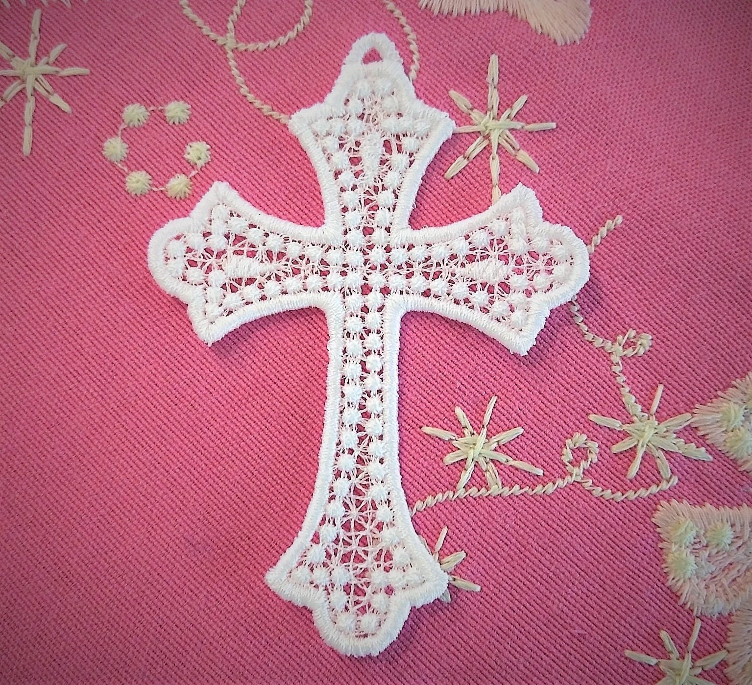 Cross lace embroidery design, cross FSL free standing lace machine embroidery design for hoop 4x4 and 5x7 assorted sizes, Christian Cross