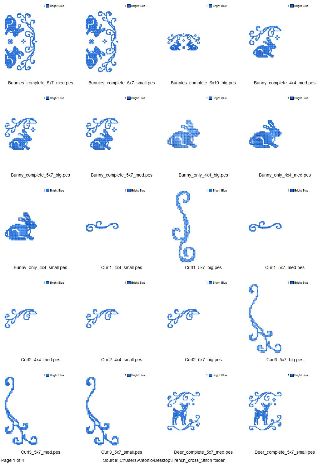 Color charts: PDF or image file with thread colors, stitch order, and counts