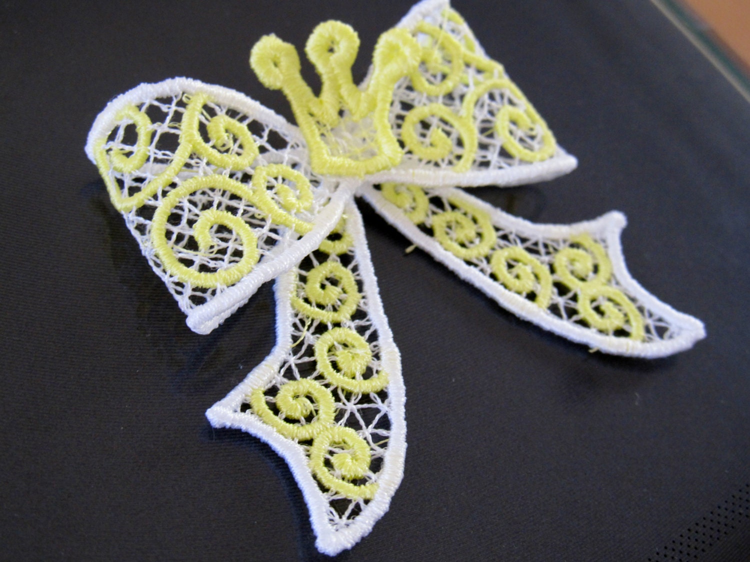 Freestanding lace! I recommend using Vilene or any other fabric-like water-soluble stabilizer (not the clear film type).
