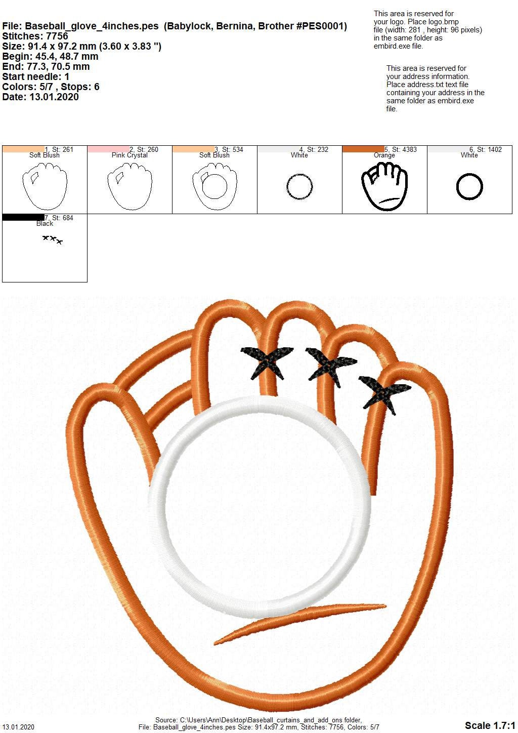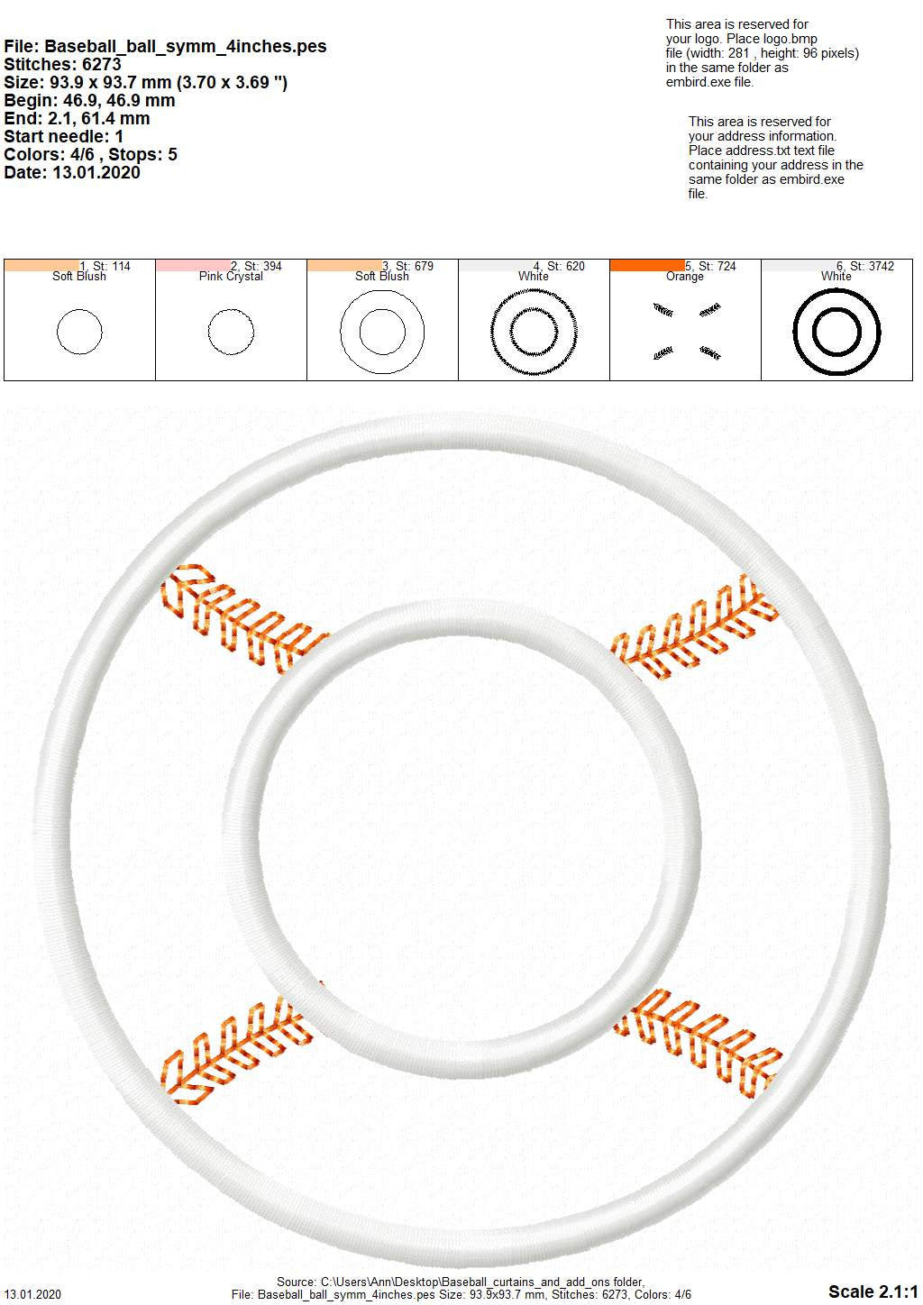 Curtain holes embroidery design - Sport Baseball theme In The Hoop machine embroidery design, ITH project for hoop 4x4