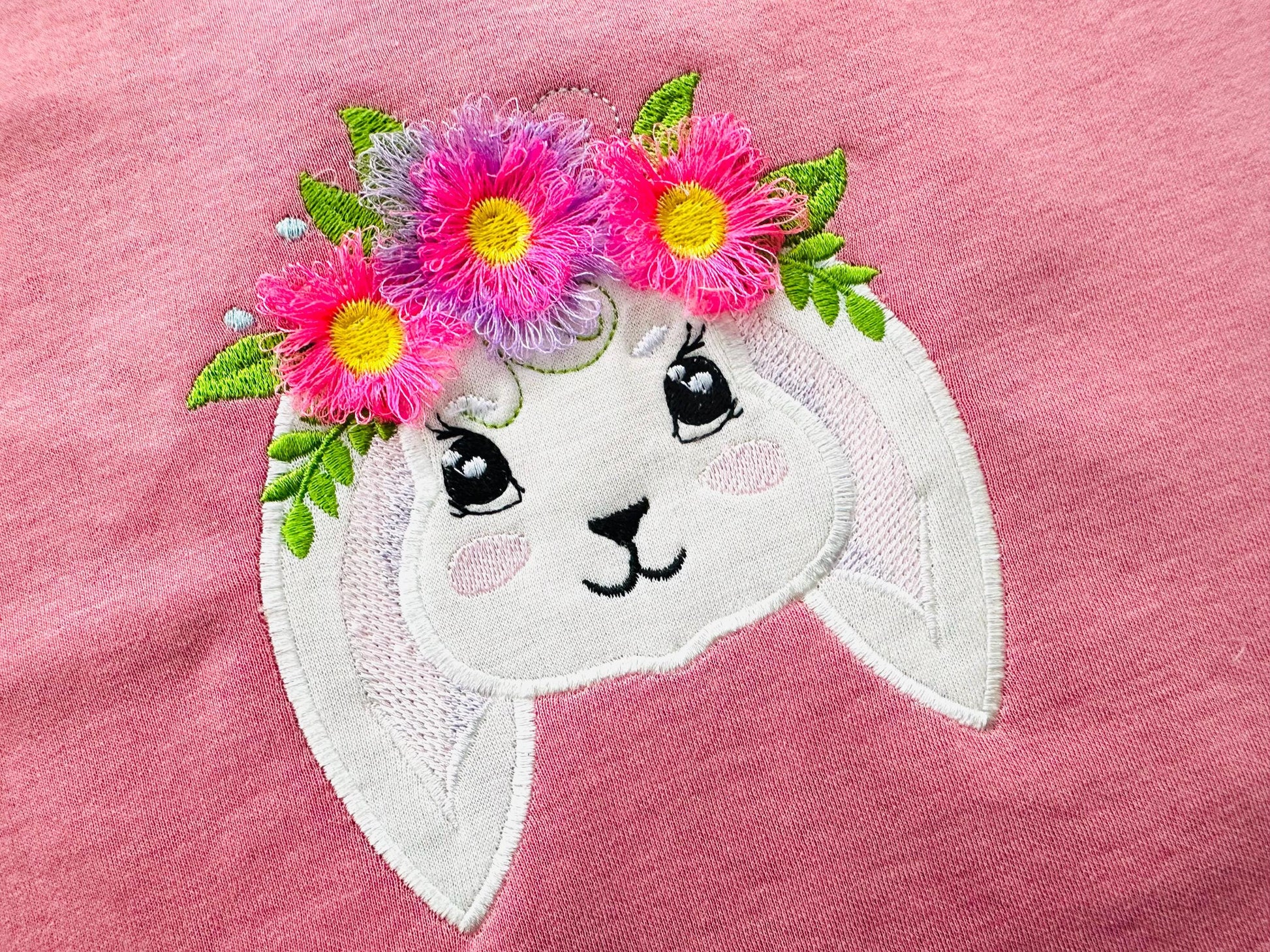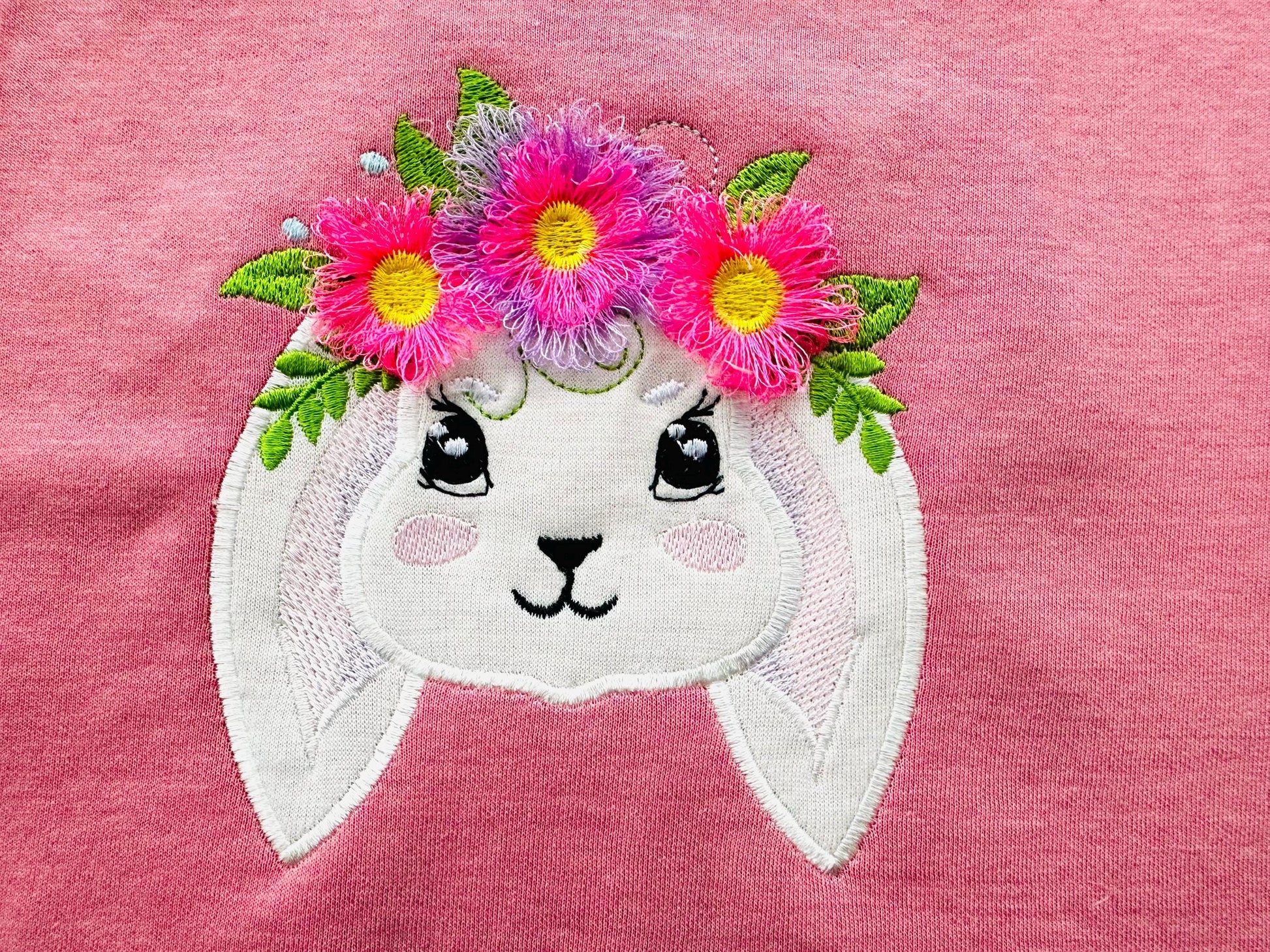 Cute Bunny Applique Fringed Fluffy Floral Crown Boho fringe Daisy flower ITH In the hoop machine embroidery designs kids girls tshirt design