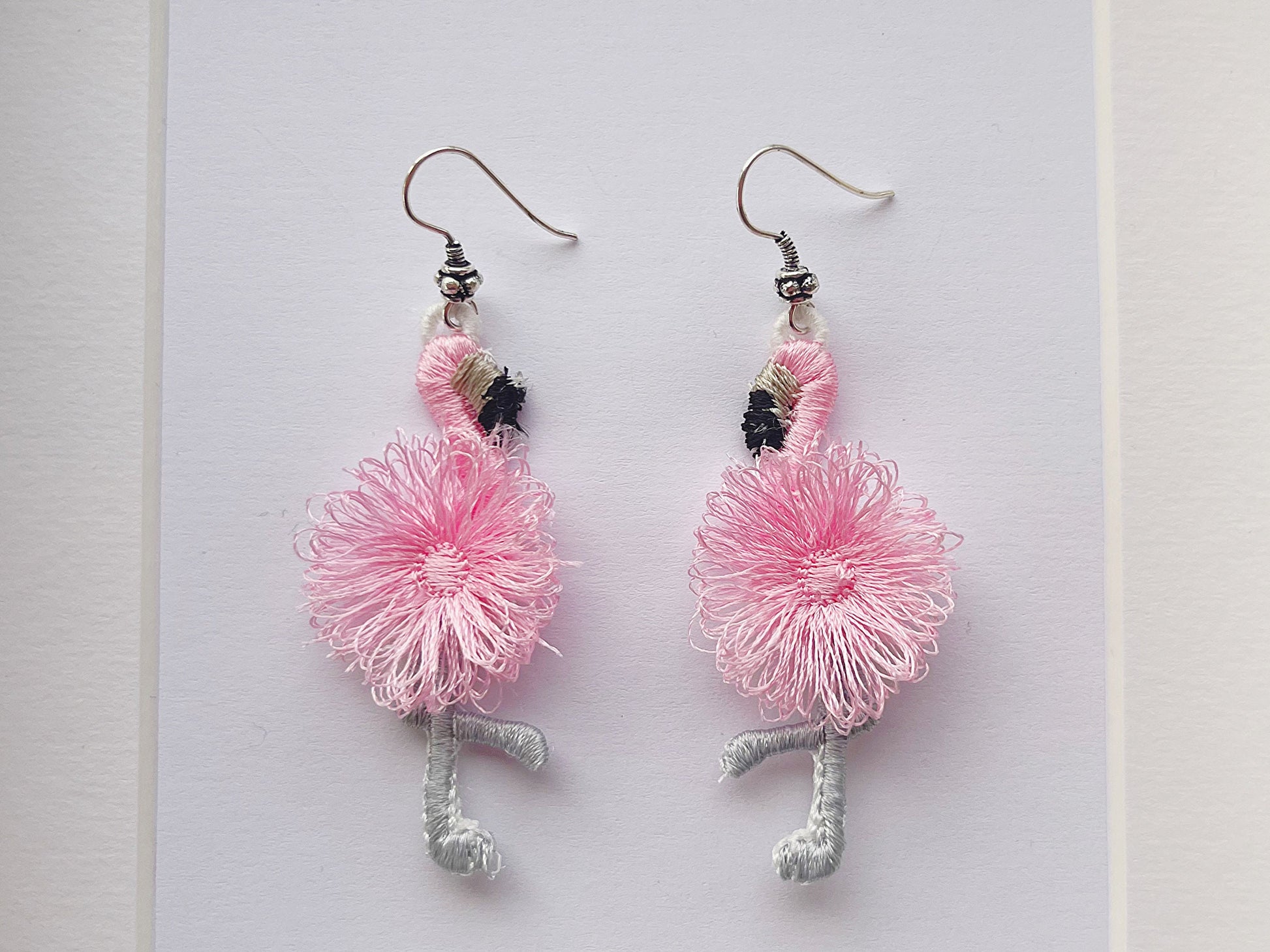 Cute Fluffy Flamingo earrings charm necklace pendant FSL freestanding lace machine embroidery designs kids girl pretty fringed flamingo bird