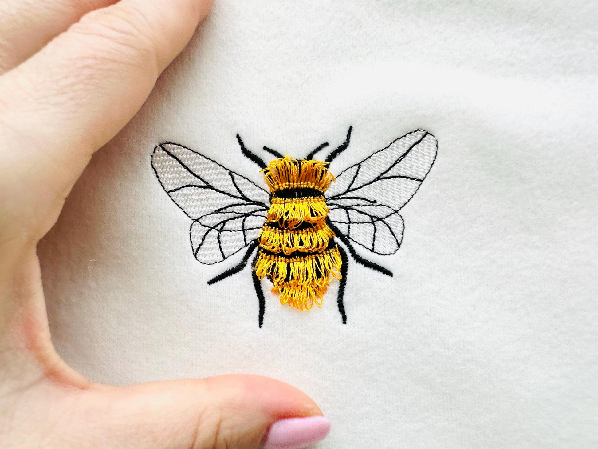 Cute Fringed Fluffy Bee machine embroidery designs fur chenille fringe in the hoop ITH kids bumblebee Honey Bee garden apiary 3 up to 5 inch