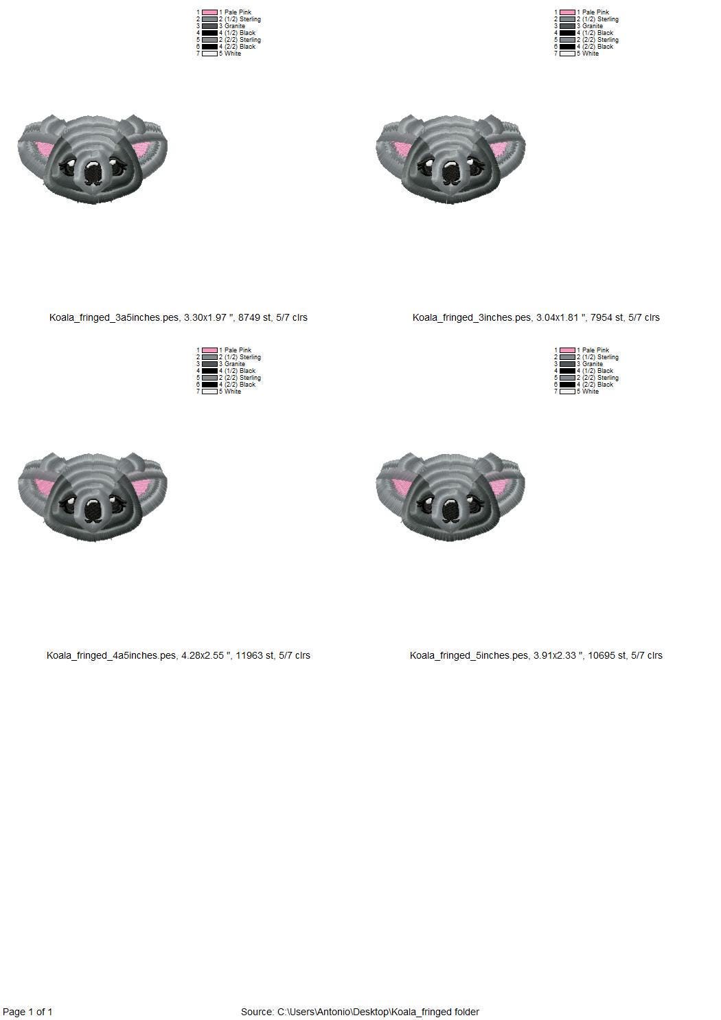 Cute fringed fluffy Koala Bear kids baby fur chenille fringe machine embroidery designs assorted sizes 3 up to 5 inches little teddy animal