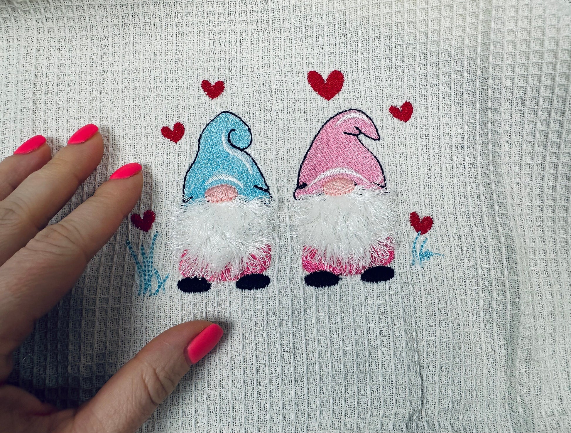 Cute Gnomes fringed fluffy beard 2 in a row machine embroidery designs in multiple sizes Valentine Day heart Gnome fringe in the hoop ITH