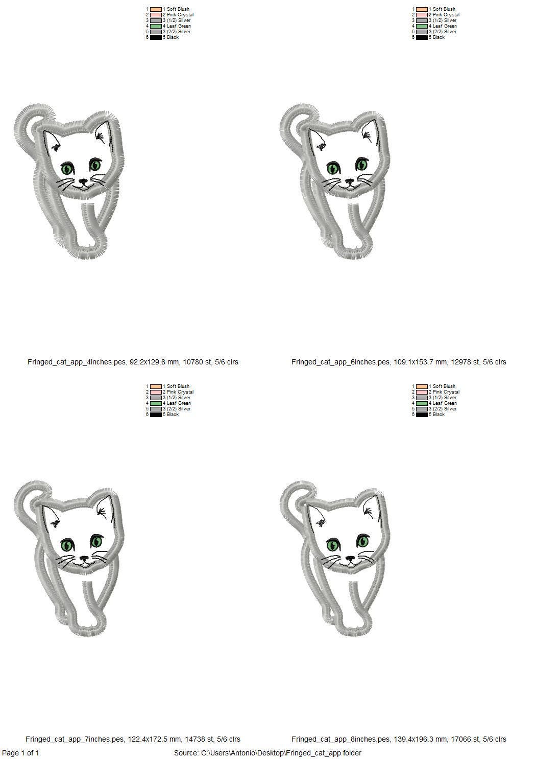 Cute Little Cat Kitty Kitten Fringed Fluffy fur Baby Applique machine embroidery designs chenille kids outfit fringe ITH sizes 5, 6, 7, 8 in