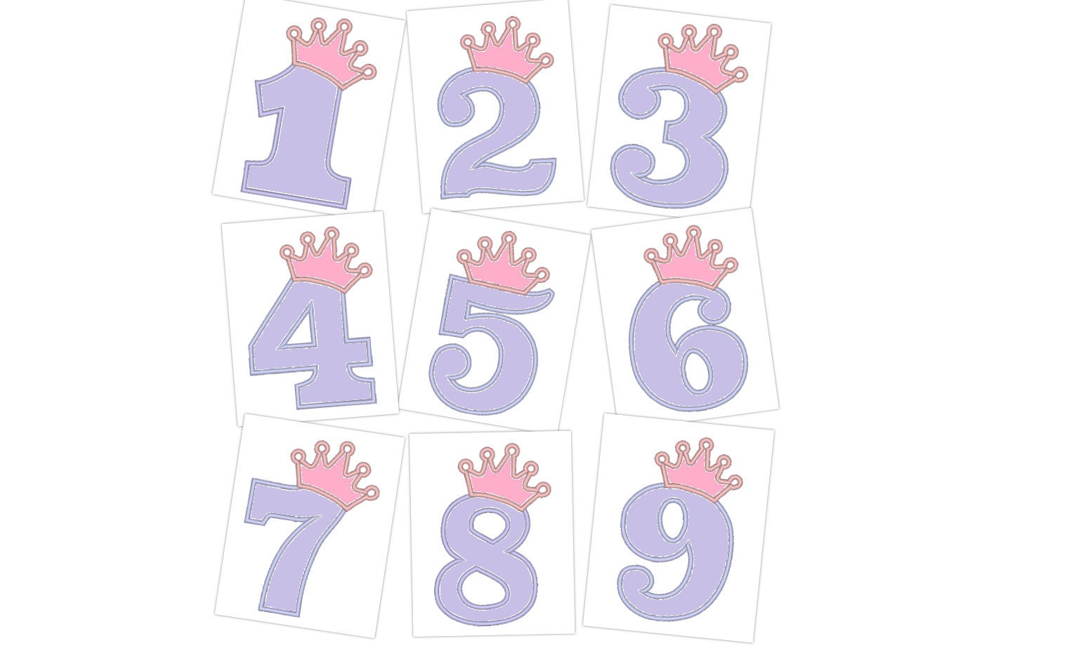 Cute Little Princess Birthday Crown Numbers , machine embroidery applique designs - 4, 5, 6 and 7 inches -