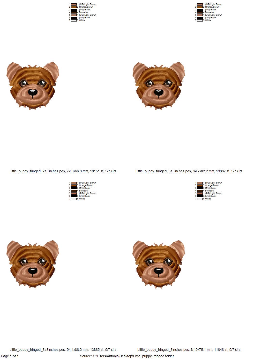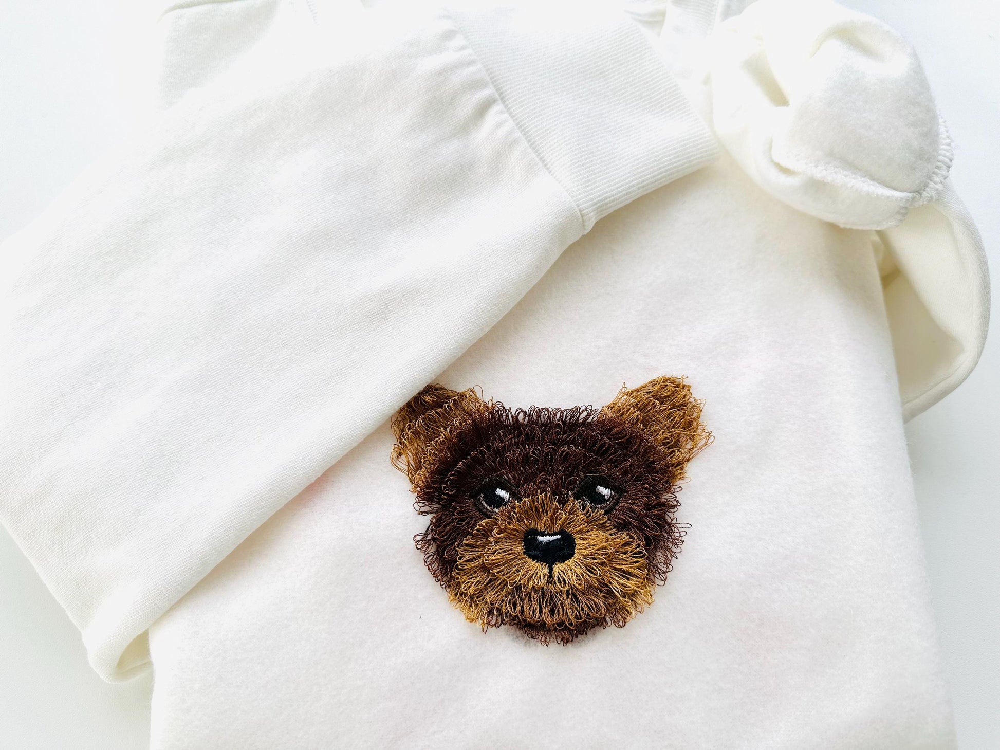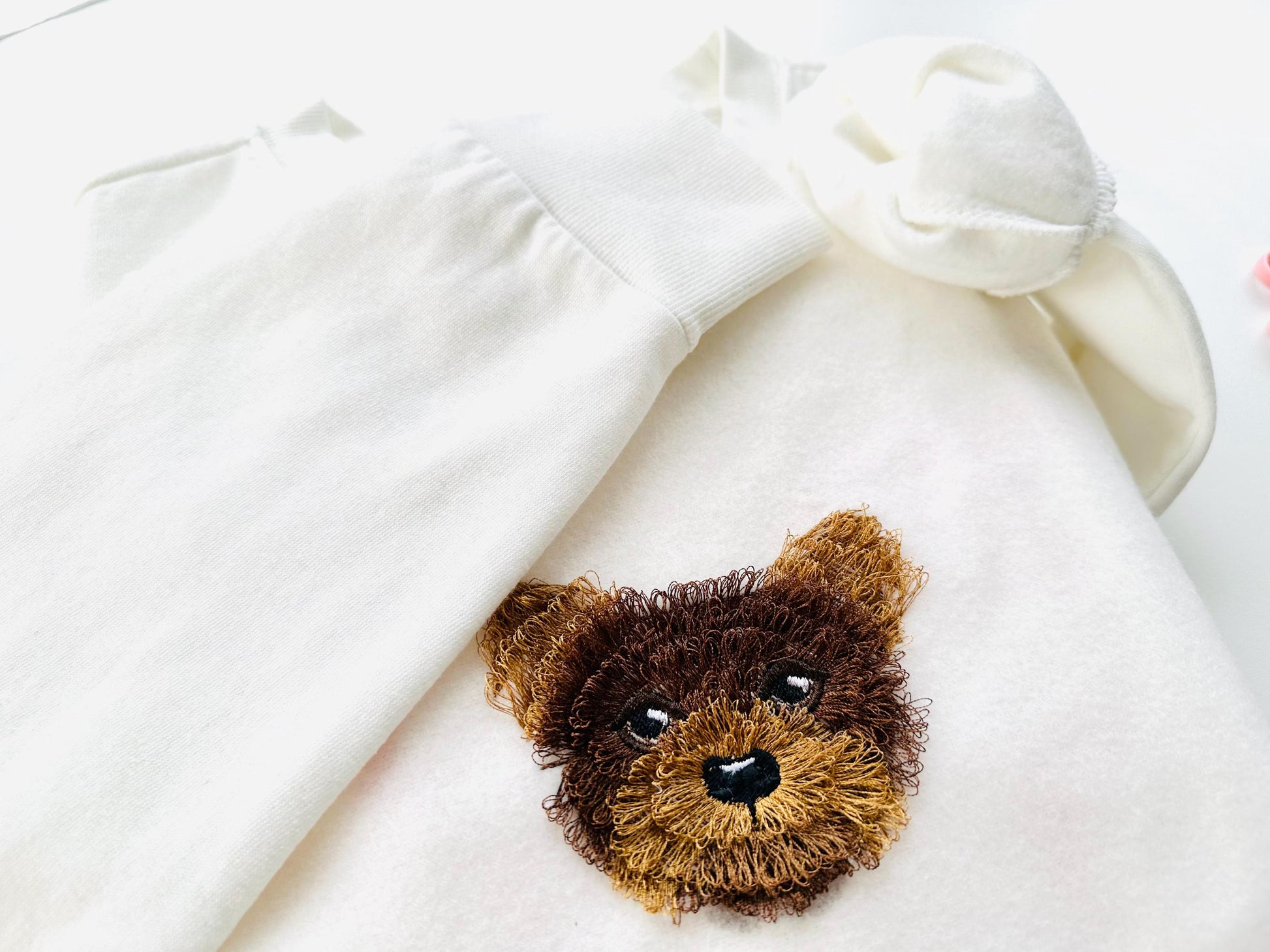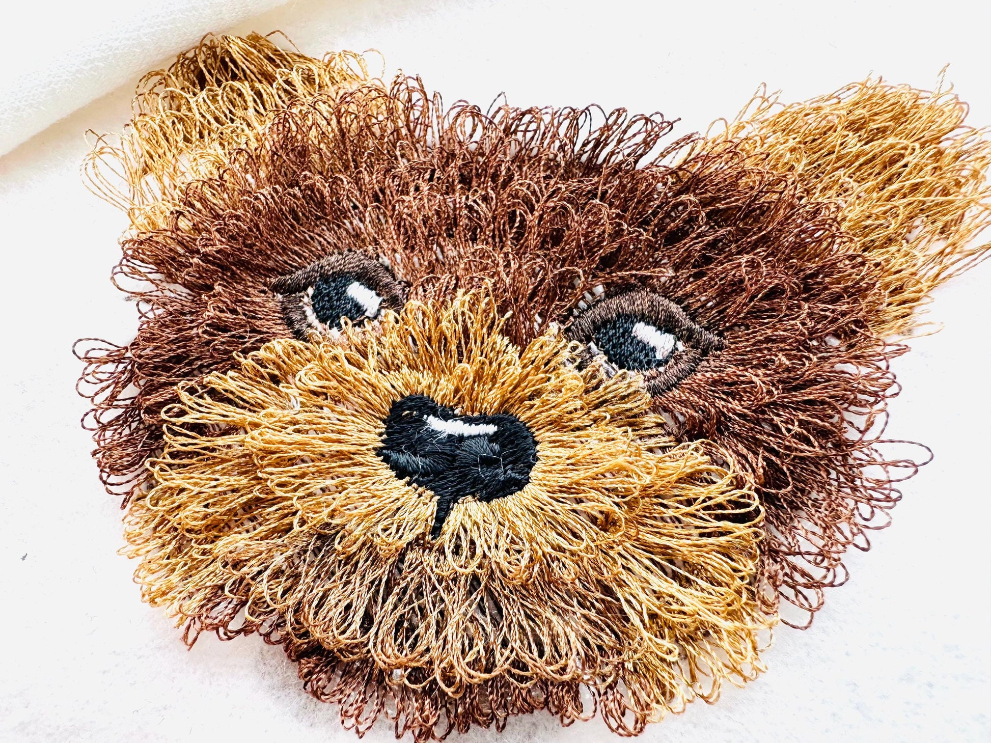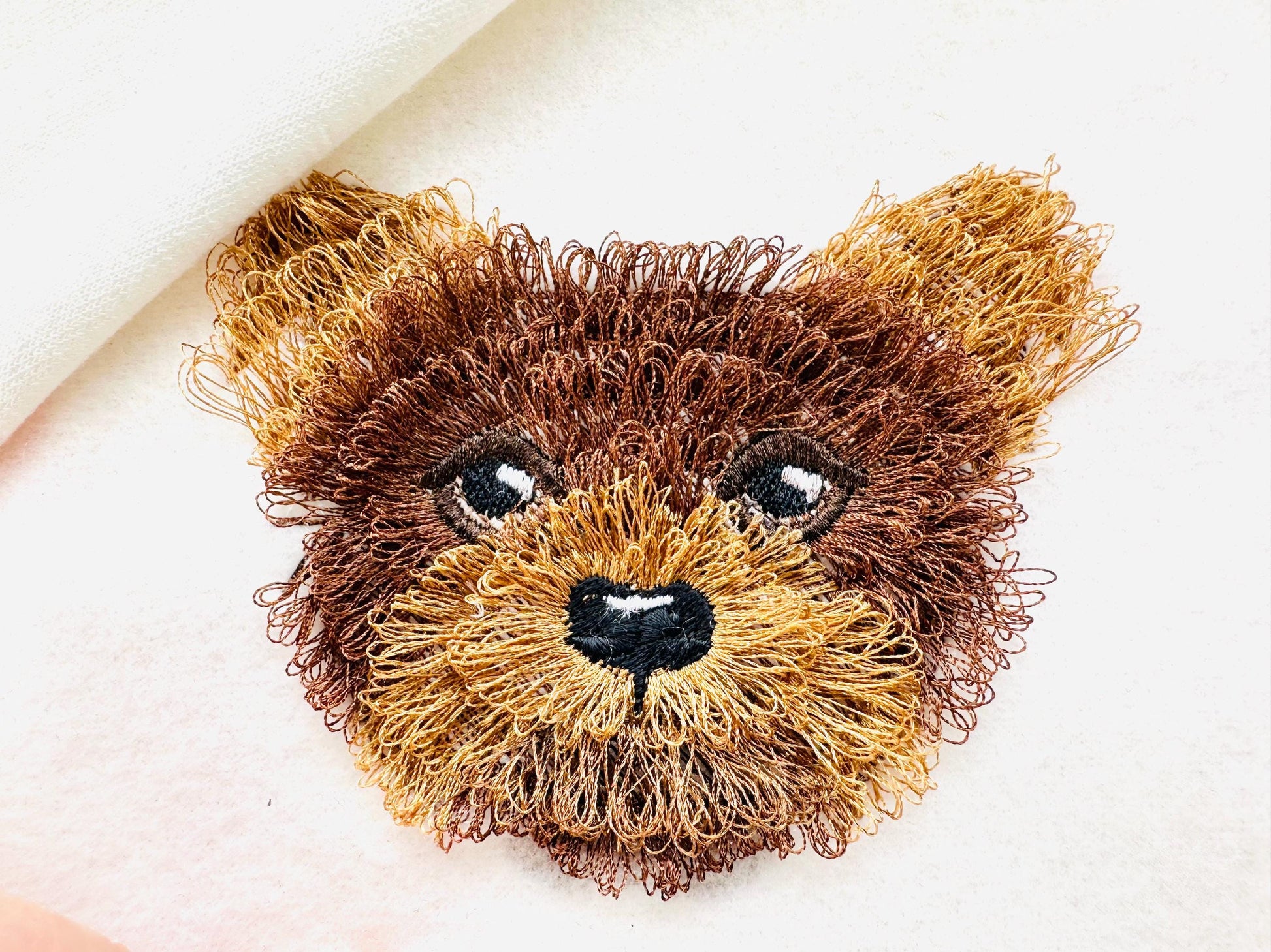 Cute little Puppy face pet dog head fringed fluffy fur chenille little Puppy machine embroidery designs small sizes for 4x4 hoop kids baby