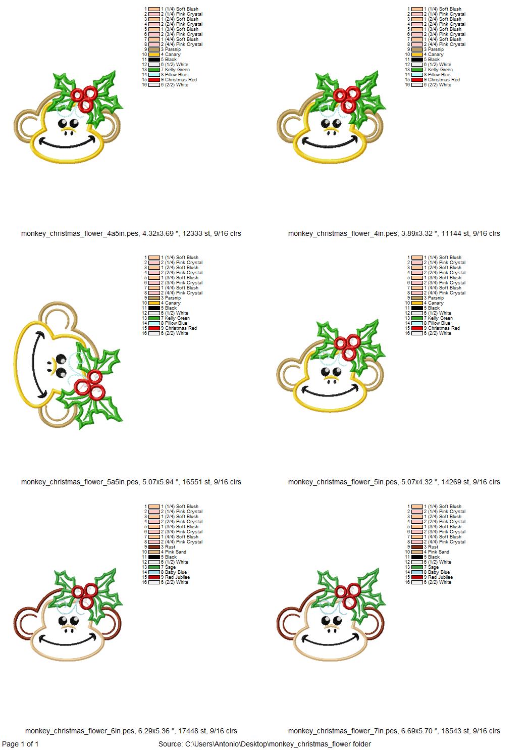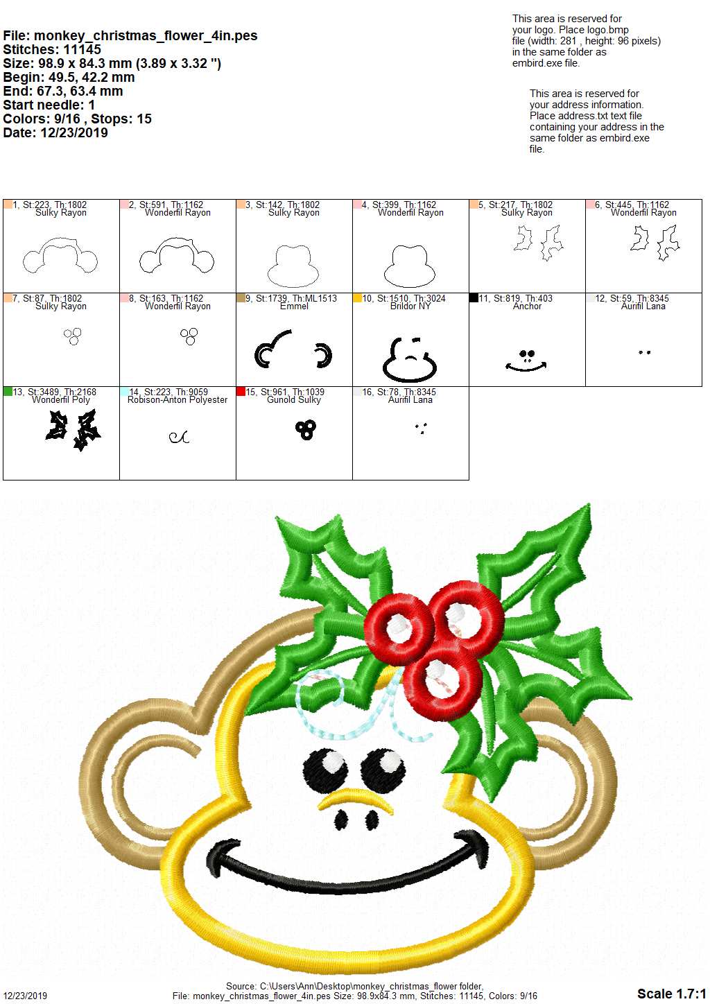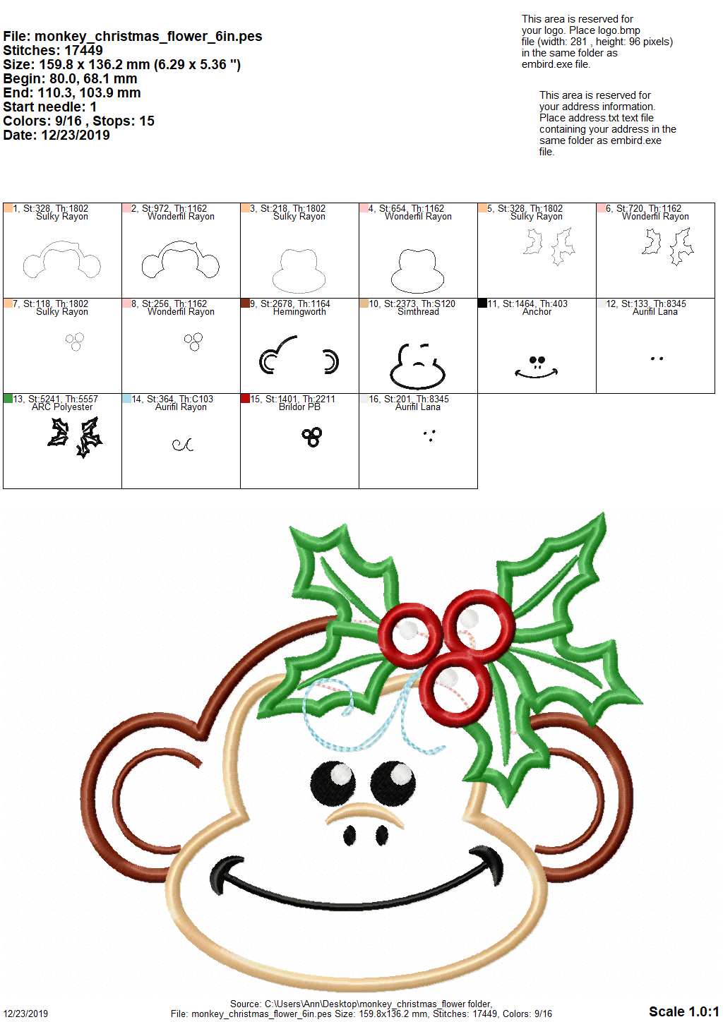 Cute Monkey Applique Holly leaves floral Flower Machine Embroidery Designs Christmas monkey kids baby design many sizes