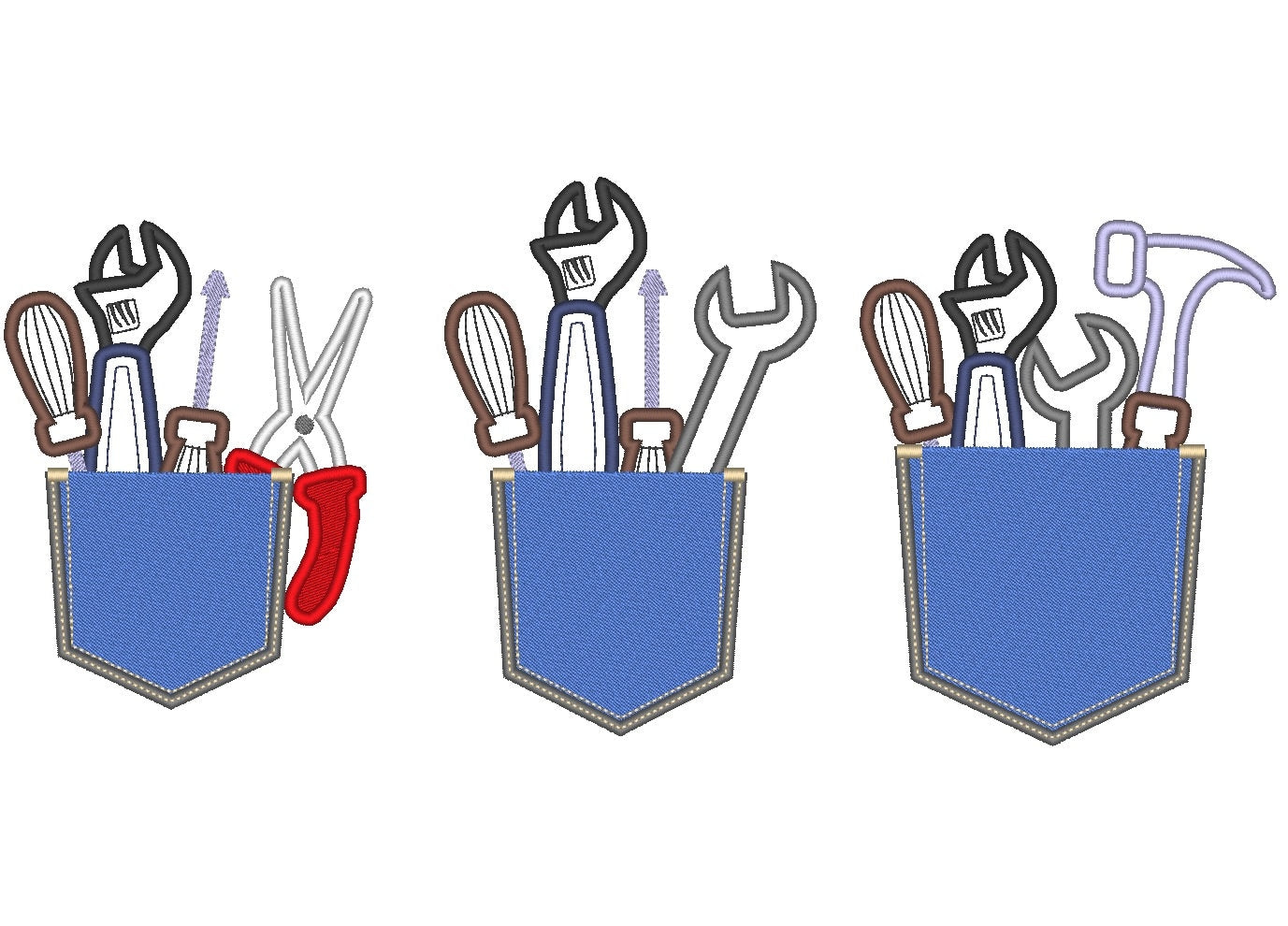 Cute real Pocket with tools Set of 3 types and Tools 5 single files for Boys appliqué machine embroidery designs simply in the hoop ITH Sizes