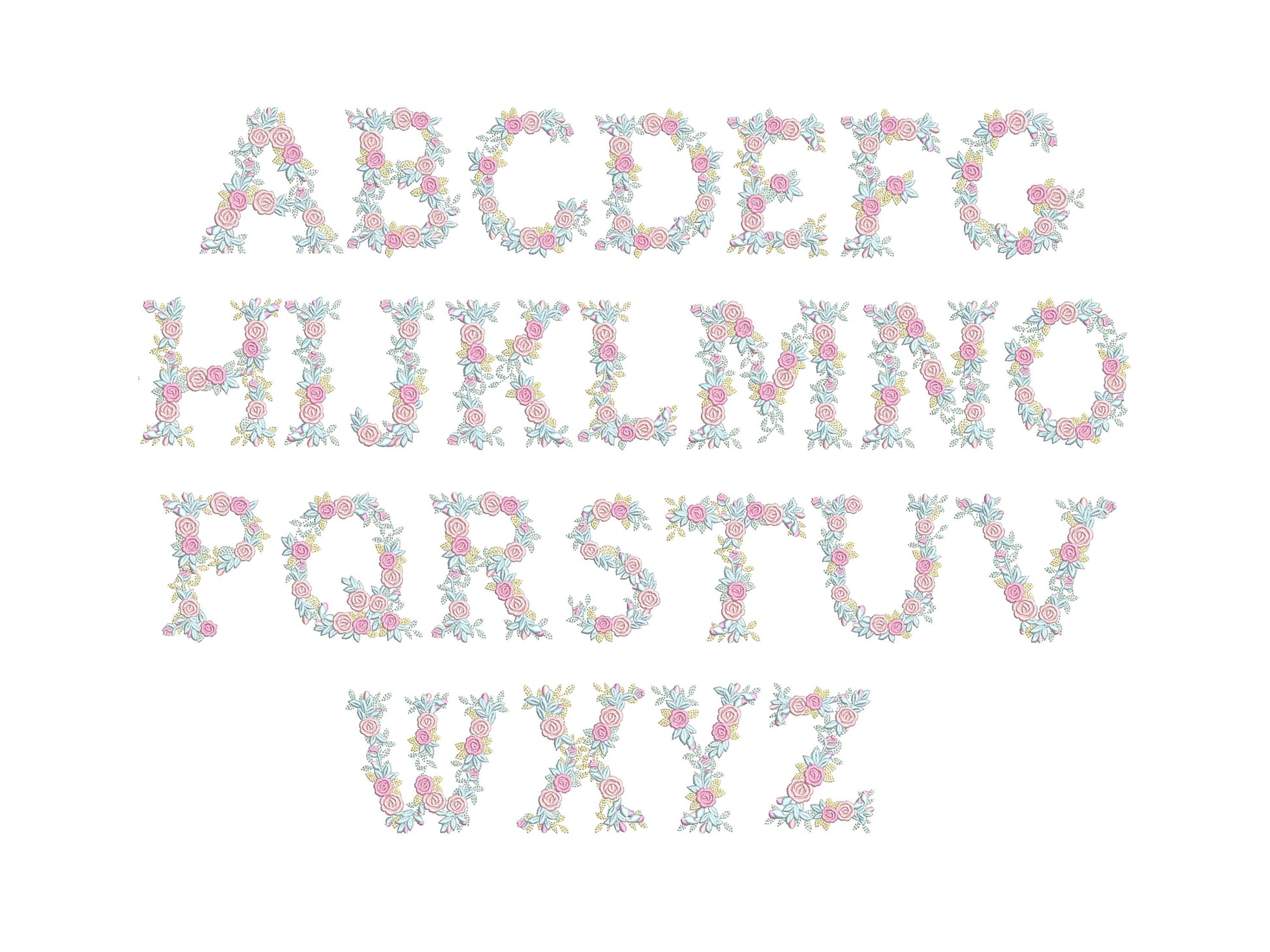 Delicate Roses Floral font alphabet garden flag monogram liberty fashioned flower Font machine embroidery designs 3, 4, 6, 7, 8" included BX